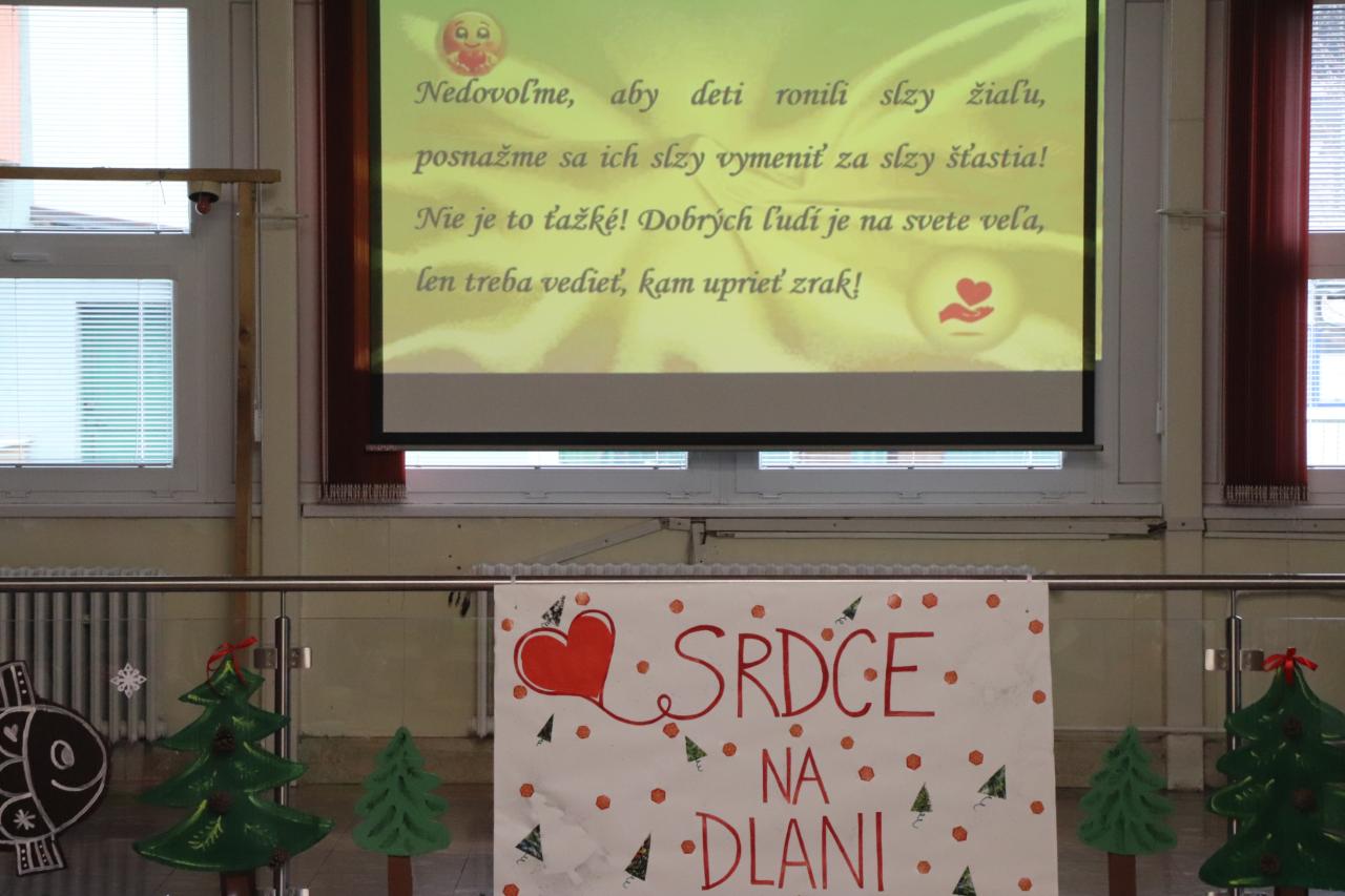Spolu 20 detí navštevujúcich Základnú školu s materskou školou na sídlisku Centrum I bude mať aj tento rok krajšie Vianoce. Môže za to množstvo darcov, ale predovšetkým dve pedagogičky, Alena Kubicová a Mária Gulová, ktoré s myšlienkou založenia projektu Srdce na dlani prišli pred 12 rokmi. Deťom pochádzajúcim zo sociálne znevýhodneného prostredia sa snažia pomáhať nielen na Vianoce, ale aj potravinovou pomocou pre rodiny, ktorú realizujú dvakrát do roka.