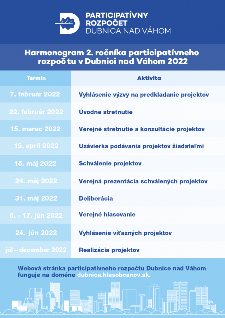 Harmonogram 2. ročníka participatívneho rozpočtu v Dubnici nad Váhom 2022