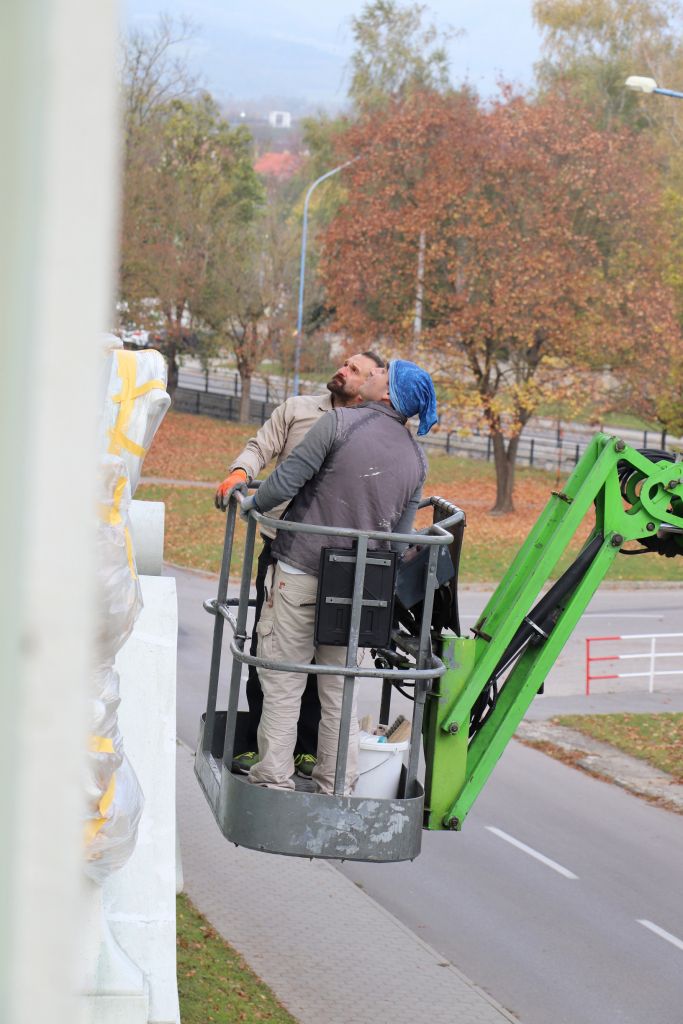 Po preskúmaní stavu fasády viacerými renomovanými odborníkmi a po konzultácii s Krajským pamiatkovým úradom Trenčín múzeum pristúpilo k jej renovácii. Odborní pracovníci vonkajšiu časť veže najskôr očistili od prachu ometením a vysokotlakovým čističom, rovnako odstránili aj poškodené časti omietky. Reštauračné práce budú po zjednotení štruktúry pokračovať nanesením jednotlivých náterov, ktoré ju budú udržiavať v jednotnej farbe. Okrem týchto krokov je súčasťou renovácie aj inštalácia plechového krytu nad jedným z okien, ktorý má zamedziť stekaniu dažďovej vody priamo na stenu.