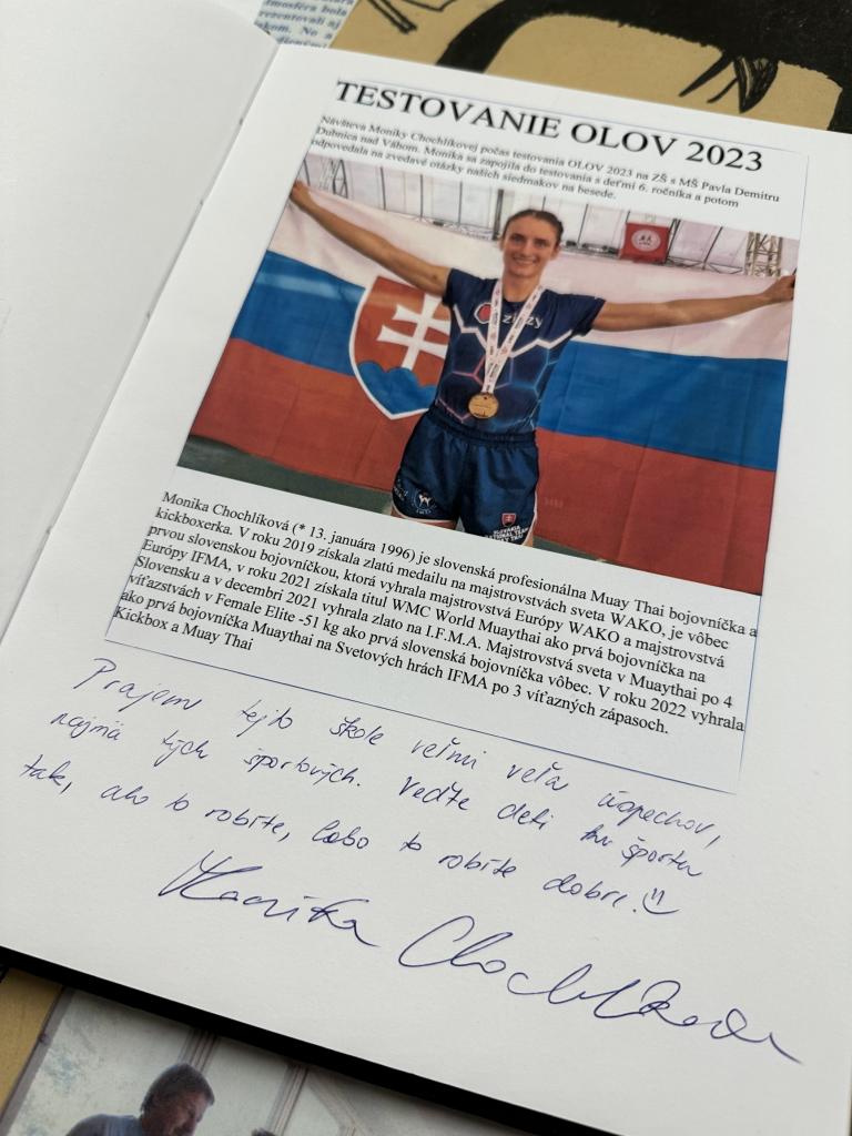 Po ukončení športových disciplín nasledovala beseda s úspešnou bojovníčkou Monikou Chochlíkovou. „Veľmi vítam iniciatívu SOŠV, pretože tiež mám pocit, že deti nie sú k športu príliš vedené. Teší ma, že takýmto spôsobom môžem prispieť k tomu, aby sa začali viac hýbať. Keď sa dnes podarí namotivovať aspoň jedno dieťa, aby sa začalo venovať športu, bude to výhra,“ uviedla Monika Chochlíková.