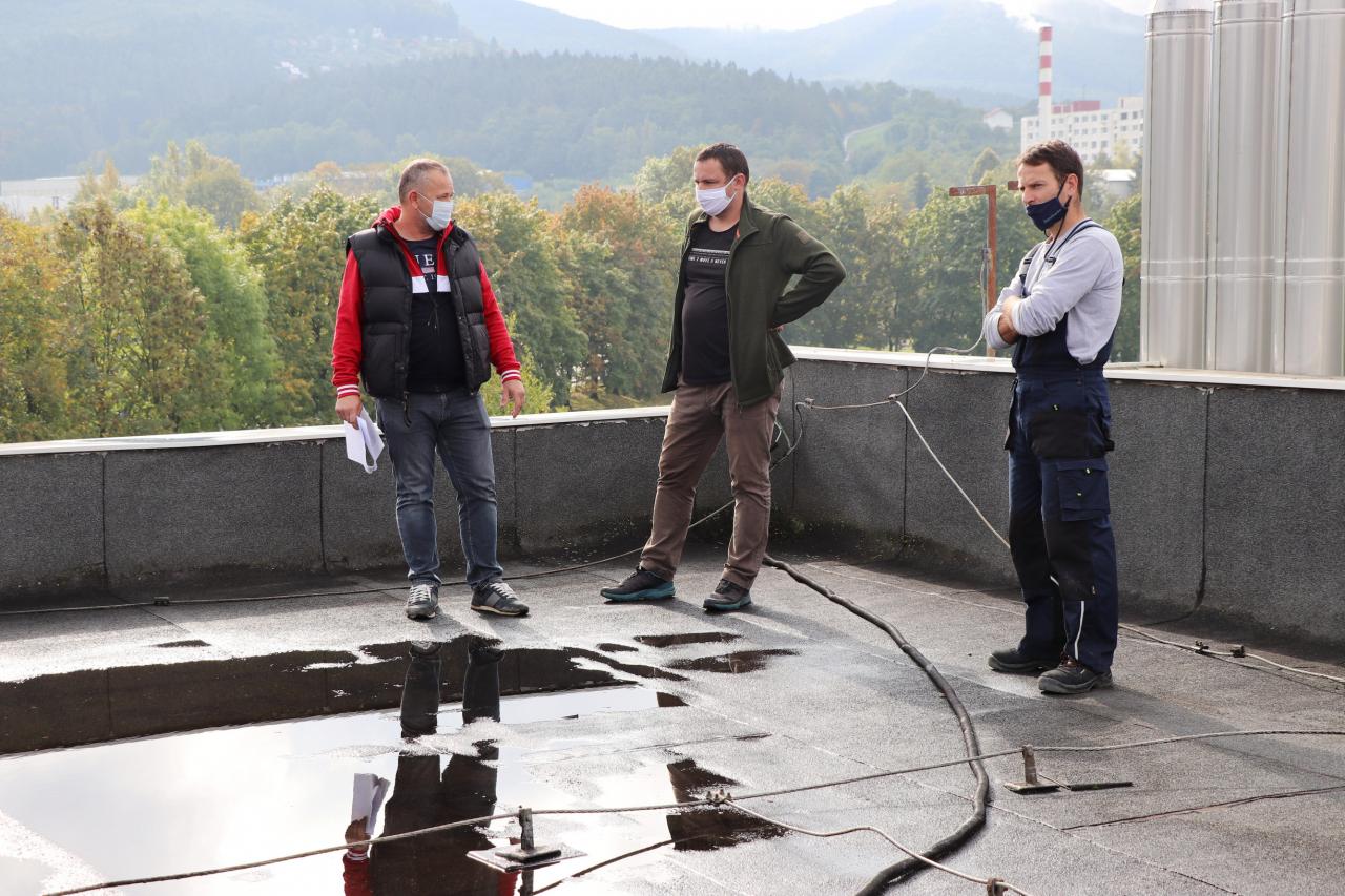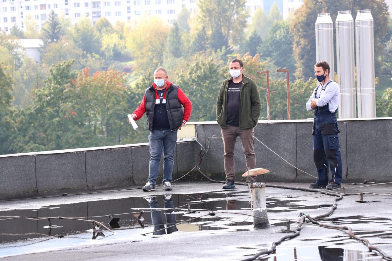 Zatápaný pavilón F podstúpi okrem výmeny strešnej krytiny aj komplexné zateplenie, keďže ide o časť budovy, ktorá počas rekonštrukcie nebola zateplená. „Existujúce vnútorné zvody, ktoré nám dažďovú kanalizáciu stále zahlcovali, vyvedieme na bočnú fasádu – z jednej strany ich zvedieme na terén, z druhej strany pôjde voda na nižší pavilón, odkiaľ vodu zvedieme ďalšími vpusťami do kanalizácie,“ vysvetlil postup odborný referent investičnej výstavy Jozef Králik s tým, že staré zvody vymenia aj na pavilónoch C a D. Aj tieto zvody budú smerované na fasádu, aby sa tak odviedla všetka voda zo strechy.
