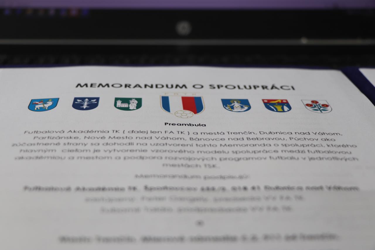 Hlavným cieľom memoranda je vytvorenie vzorového modelu spolupráce medzi futbalovou akadémiou a mestom a podpora rozvojových programov futbalu v jednotlivých mestách v Trenčianskom kraji. „Od podpisu memoranda si sľubujeme rozvoj futbalu nielen u nás v meste, ale celkovo v kraji. Verím, že vytvoríme spolu s ostatnými samosprávami a klubmi jeden funkčný celok, v ktorom budú deti štruktúrovane postupovať smerom k profesionalite, porozumeniu športovým princípom a osobnostnému rozvoju. Dúfam, že sa tieto ciele podarí prostredníctvom futbalovej akadémie naplniť, a to je aj jeden z dôvodov, pre ktorý sme k podpisu memorandu pristúpili,“ vyslovil primátor mesta Peter Wolf.