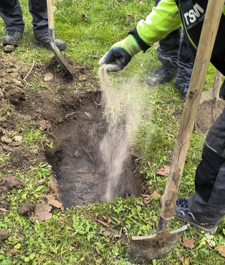 - kompost z mestskej kompostárne – zlepšuje štruktúru pôdy a dodáva potrebné živiny. Vrstva kompostu je rozprestretá priamo na povrchu koreňového balu, aby pri každom daždi postupne prenikali živiny do pôdy,