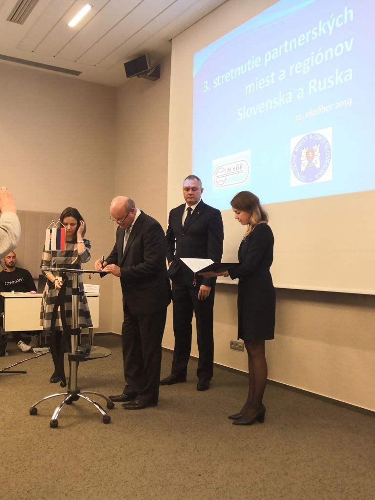 V poradí tretie stretnutie tohto druhu usporiadalo Združenie miest a obcí Slovenska (ZMOS). Pracovné stretnutie, ktorého sa zúčastnili desiatky samospráv zo slovenskej i ruskej strany, tentokrát hostila Bratislava. Svojou účasťou ho podporili aj poslanci Národnej rady Slovenskej republiky, zástupcovia ministerstiev či medzinárodných asociácií. Pracovnú konferenciu zároveň Združenie miest a obcí Slovenska využilo na podpis memoranda o spolupráci s Medzinárodnou asociáciou partnerských miest Ruskej federácie. Podľa slov Milana Mušku, výkonného podpredsedu ZMOS, ide o prvú písomnú dohodu na úrovni ZMOS medzi slovenskou a ruskou stranou. Predseda ZMOS Branislav Tréger vníma turizmus a cestovný ruch ako oblasti s najväčším potenciálom na rozvoj spolupráce medzi slovenskými a ruskými samosprávami. Podpísané memorandum je podľa jeho slov potvrdením doterajšej kooperácie v oblasti športu, vzdelávania či kultúry.