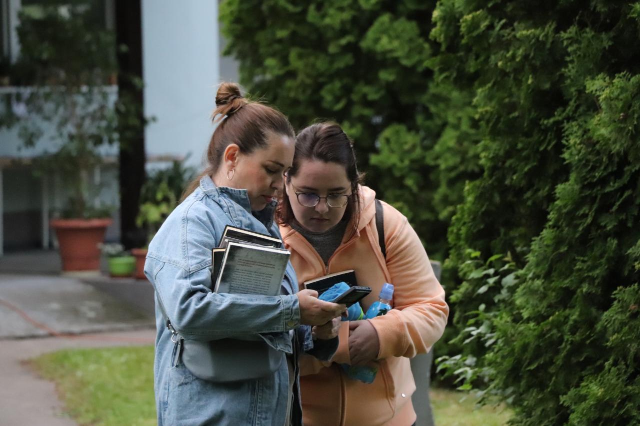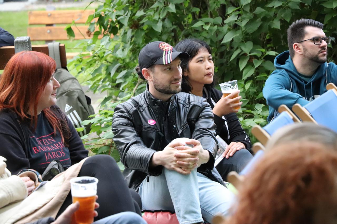 Počasie program neohrozilo, napokon, minulý rok sme ho celé presunuli do interiéru, no určite odradilo viacerých, ktorí sa do knižničnej záhrady chystali. S Tomášom Forróom, krízovým reportérom, pôsobiacim najmä na Ukrajine, sme sa však museli zhovárať vnútri. S prekvapením sme sledovali, ako sa v nie veľmi atraktívnom čase o 15.30 h miestnosť plní. Tomáš bol ako hosť mimoriadne zaujímavý - stal sa hovorcom Ukrajiny u nás a treba priznať, že dakedy ním viditeľne hýbali emócie. Jeho Spev sirén znel oddelením beletrie viac ako hodinu.