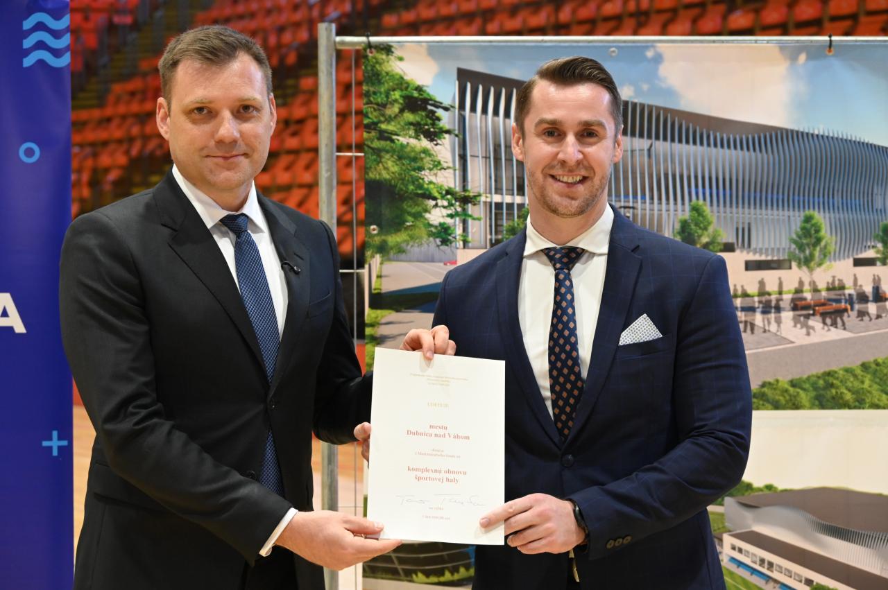 Pridelenie 5-miliónovej dotácie pre mesto Dubnica nad Váhom vo štvrtok 26. marca 2026 na tlačovej konferencii priamo v Športovej hale v Dubnici nad Váhom potvrdil minister životného prostredia Tomáš Taraba. „Ak chceme na Slovensku pestovať u detí vzťah k športu, zdravému pohybu a dosahovať športové úspechy, potrebujeme investovať aj do modernej, kvalitnej infraštruktúry, ktorá prinesie významnú energetickú úsporu. Finančná podpora, ktorú sme pripravili z Modernizačného fondu, nie z prostriedkov štátneho rozpočtu, nasmeruje investície aj do modernizácie športovísk tohto druhu,“ zdôraznil šéf envirorezortu.