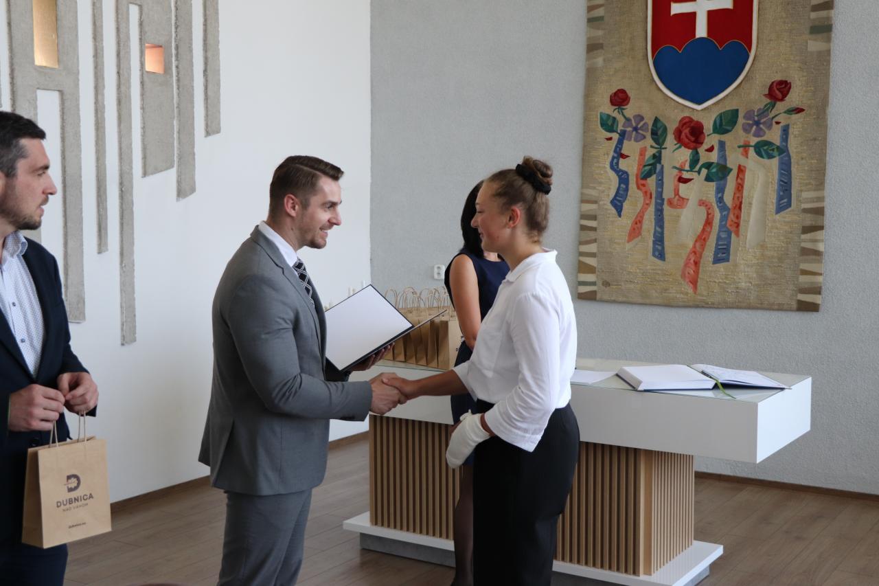 Slávnostné odovzdávanie ocenení primátorom mesta sa uskutočnilo v pondelok 20. júna 2022 v sobášnej sieni Mestského úradu v Dubnici nad Váhom v prítomnosti žiakov, riaditeľov a riaditeliek škôl, ako aj ďalších podporovateľov žiakov. Ocenení boli žiaci prevažne 8. a 9. ročníkov ZŠ s MŠ Pod hájom, ZŠ s MŠ P. Demitru, ZŠ s MŠ Centrum I, ZŠ s MŠ sv. Dominika Savia a Základnej umeleckej školy Dubnica nad Váhom. „Som naozaj veľmi rád, že v dnešnej náročnej dobe sa v školských laviciach stále nájde množstvo detí, ktoré sú hladné po informáciách, túžia sa dozvedať viac, majú snahu robiť niečo aj nad rámec svojej komfortnej zóny, chcú pomáhať, hľadia na potreby svojich spolužiakov či snažia sa rozvíjať svoj talent,“ prihovoril sa prítomným primátor Dubnice nad Váhom Peter Wolf.
