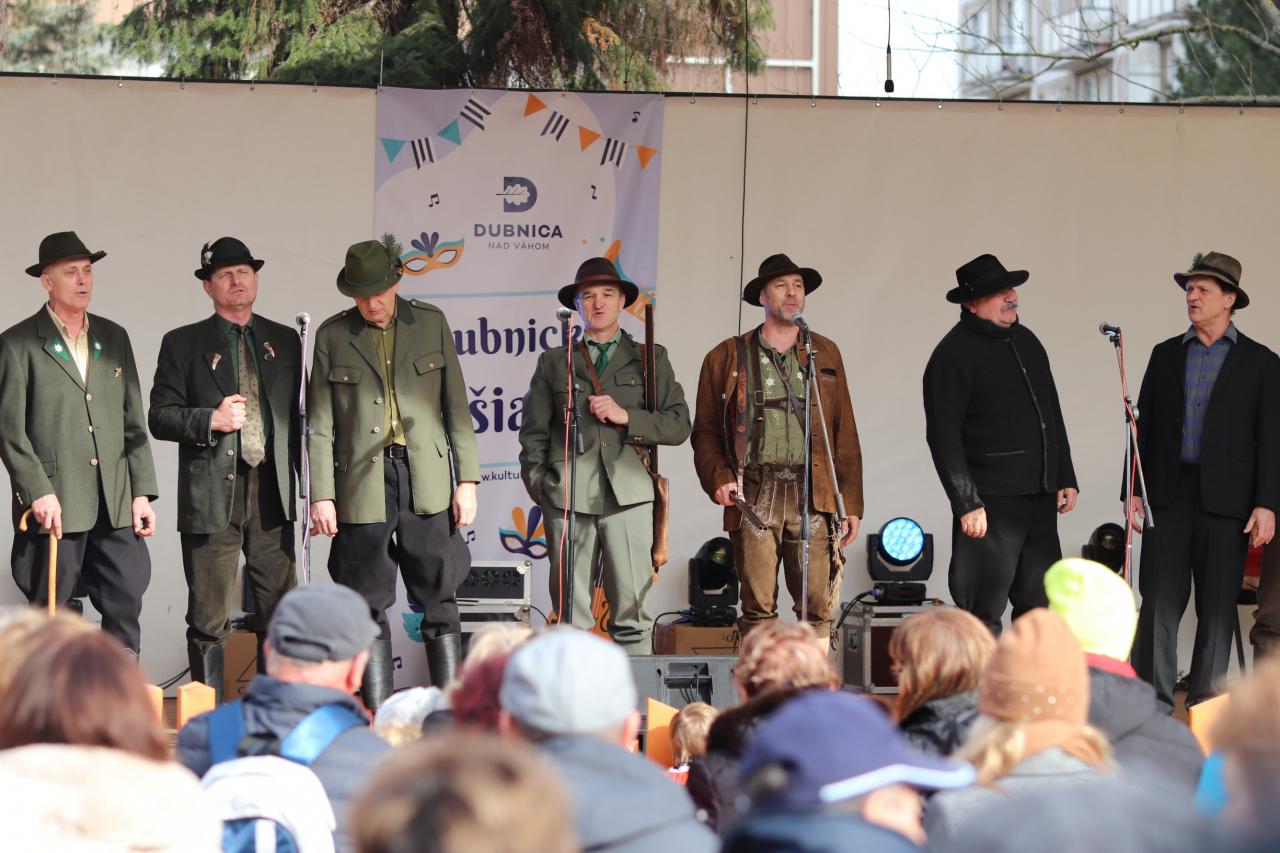 Pestrý kultúrny program, farmárske trhy, tvorivé dielničky ale aj fašiangová atmosféra a dobrá nálada. To všetko našli návštevníci dubnických fašiangov pred OC ABC, kde sa program začal už o 10.00 h vystúpením DFS Prvosienka. Po nich prebrala štafetu kultúrneho programu HS Kozovanka, ktorú na pódiu vystriedala Chlapská spevácka skupina Škrupinka z Trenčína. Dobrú náladu medzi návštevníkmi podujatia rozprúdila aj Partia od Žiliny a bodku za programom dal už tradične Folklórny súbor Senior Vršatec s programom pochovávania basy. „Aj v tomto roku sme si pre návštevníkov pripravili pestrý program. Okrem kultúrnych vystúpení sú už neodmysliteľnou súčasťou podujatia aj tvorivé dielne, ktoré nám pomáha zabezpečovať CVČ Dubnica nad Váhom, ale aj maľovanie na tvár či divadelné šišky, ktoré pripravili členovia Dubnického divadla,“ priblížila vedúca oddelenia kultúry a knižnice Zuzana Múkerová. Ako dodala, šišiek v tomto roku divadelníci pripravili viac ako 1800.