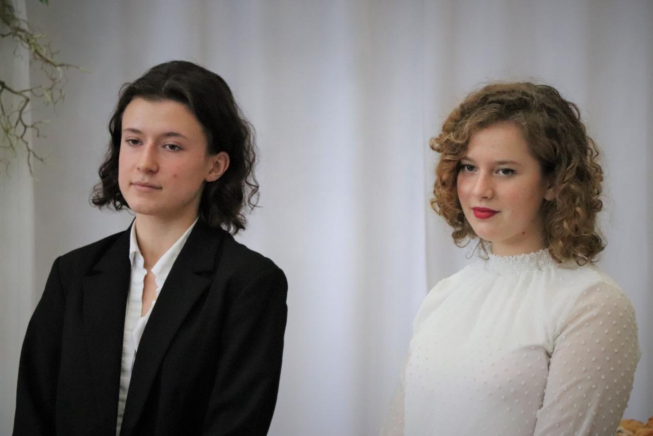Žiačky 4. ročníka osemročného štúdia sú nádejné mladé reportérky. V minulom školskom roku sa v programe Mladí reportéri venovali v rámci Agendy 2030 téme kolónie netopierov v Ladcoch, ktorú sa podarilo zachrániť pri rekonštrukcii strechy bytovky. So svojou reportážou Netopiere nestratili svoje útočisko reprezentovali Slovensko vo vekovej kategórii 11 až 14 rokov na medzinárodnej súťaži YRE - Young Reporters for the Environment, kde sa umiestnili na 1. mieste. Hanka sa okrem toho aktívne venuje štúdiu anglického jazyka, kde v celoslovenskom kole Jazykový kvet získala 2. miesto. Cintia zas svoju kreativitu rozvíja v programe Odysea mysle, kde si z celoštátneho kola odniesla 1. miesto.