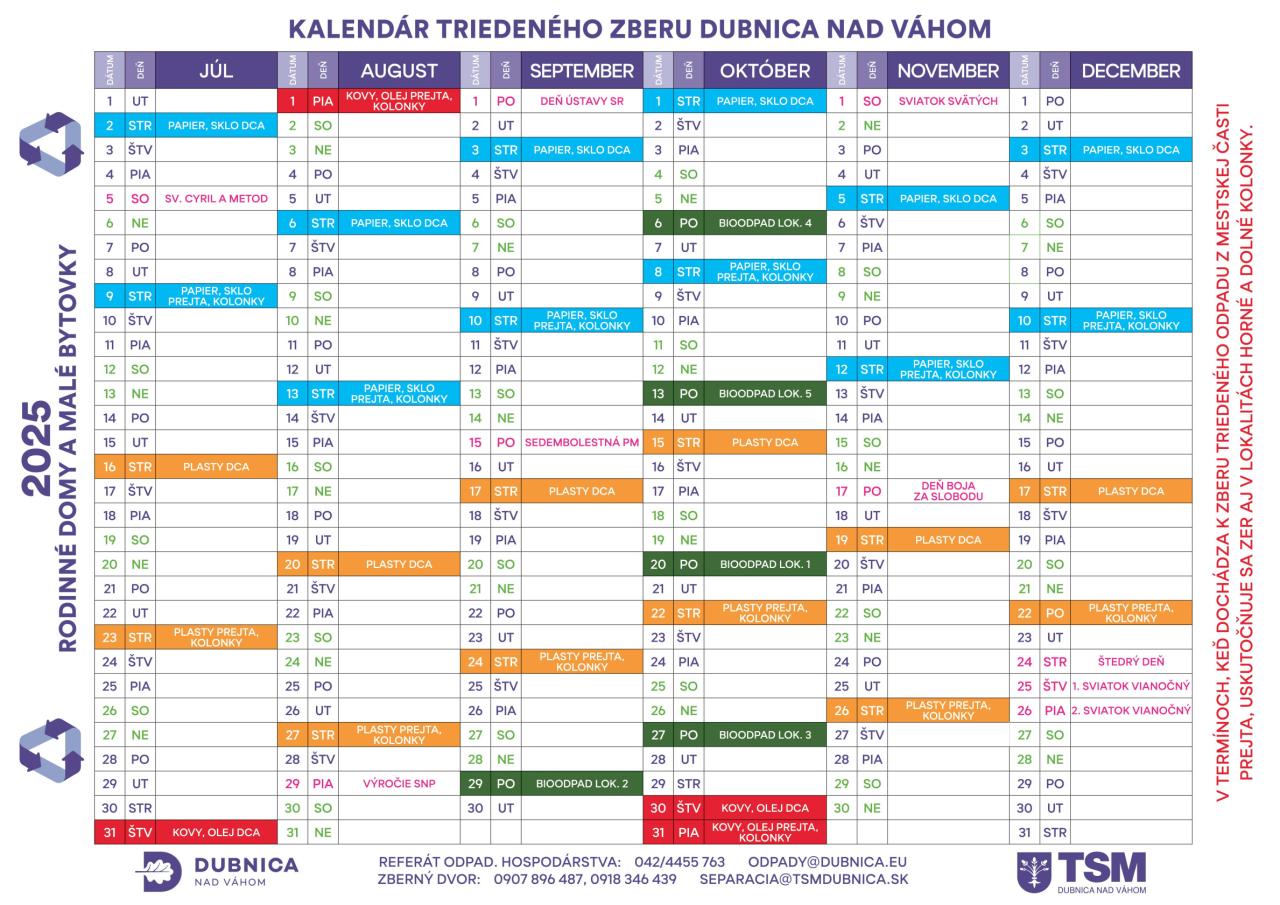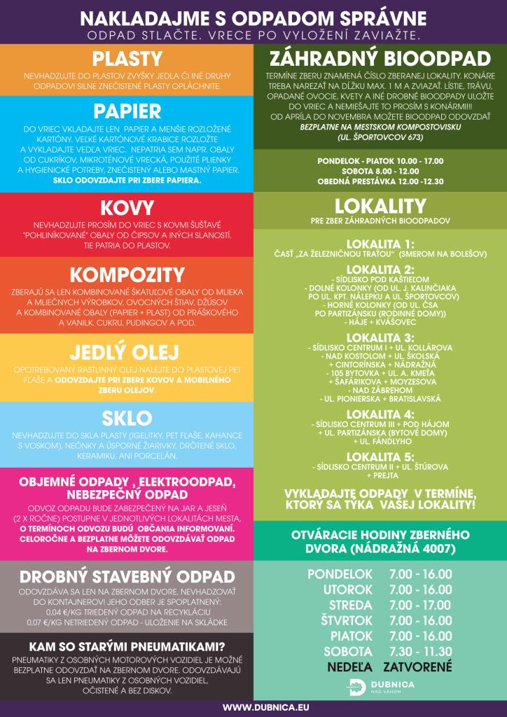 Harmonogram odvozu triedeného zberu pre aktuálny mesiac nájdete vždy aj v Dubnických novinách.