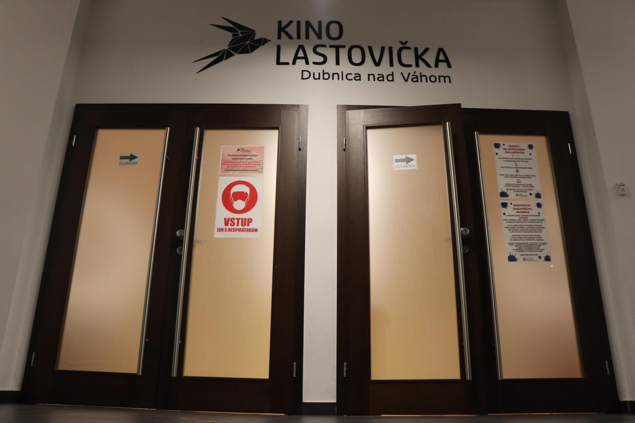 Kino Lastovička v bordovej farbe COVID automatu premieta v režime OTP