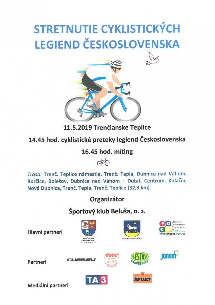 Sú vám známe mená ako Petr Bucháček, Jiří Daler, Kamil Haťapka, Milan Chren či Milan Jurčo? Radi by ste týchto pánov videli opäť v akcii? Príďte ich podporiť počas pretekov s názvom "Stretnutie cyklistických legiend Československa". Títo páni, ktorí už majú čo-to odjazdené, budú v sobotu 11. mája 2019 prechádzať aj naším mestom.