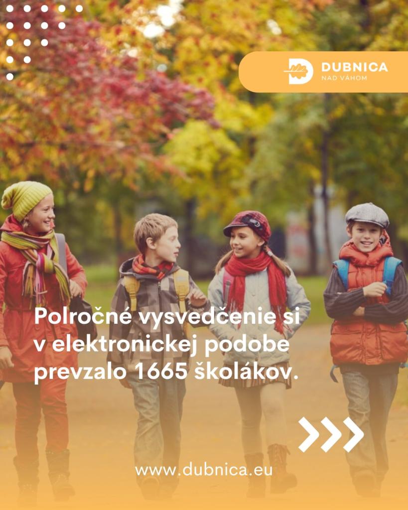 Druhá polovica školského roka je pred nami a s ňou aj nové výzvy na ceste za vedomosťami. Mesto Dubnica nad Váhom podporuje kvalitné vzdelávanie a vytvára podmienky, v ktorých sa môžu žiaci rozvíjať a naplno využiť svoj potenciál. Všetkým školákom gratulujeme k ich polročným výsledkom a prajeme im veľa energie do ďalšieho štúdia!