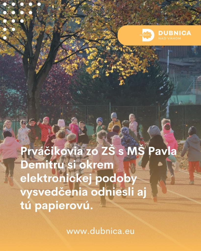 „Školský systém sa neustále inovuje, aj preto žiaci dostali vysvedčenia v elektronickej podobe, čím školy pokračujú v modernizácii a digitalizácii vzdelávania,“ uviedla vedúca oddelenia školstva Zdena Bunčáková. Rodičia si tak môžu známky svojich detí jednoducho pozrieť prostredníctvom školských informačných systémov, EduPage. Táto zmena prináša nielen ekologické, ale aj praktické výhody – vysvedčenia sú dostupné kedykoľvek a kdekoľvek. „Všetky tri základné školy v Dubnici nad Váhom sú ako jedny z prvých na Slovensku zapojené do kurikulárnej reformy. Od 1. septembra 2024 vyučujú žiakov prvého ročníka v súlade s novým vzdelávacím programom,“ doplnila vedúca oddelenia školstva Zdena Bunčáková. Školy sú tak viac zamerané na vyváženie pomeru teoretických a praktických poznatkov a rešpektovanie individuálnych rozdielov a potrieb žiakov.