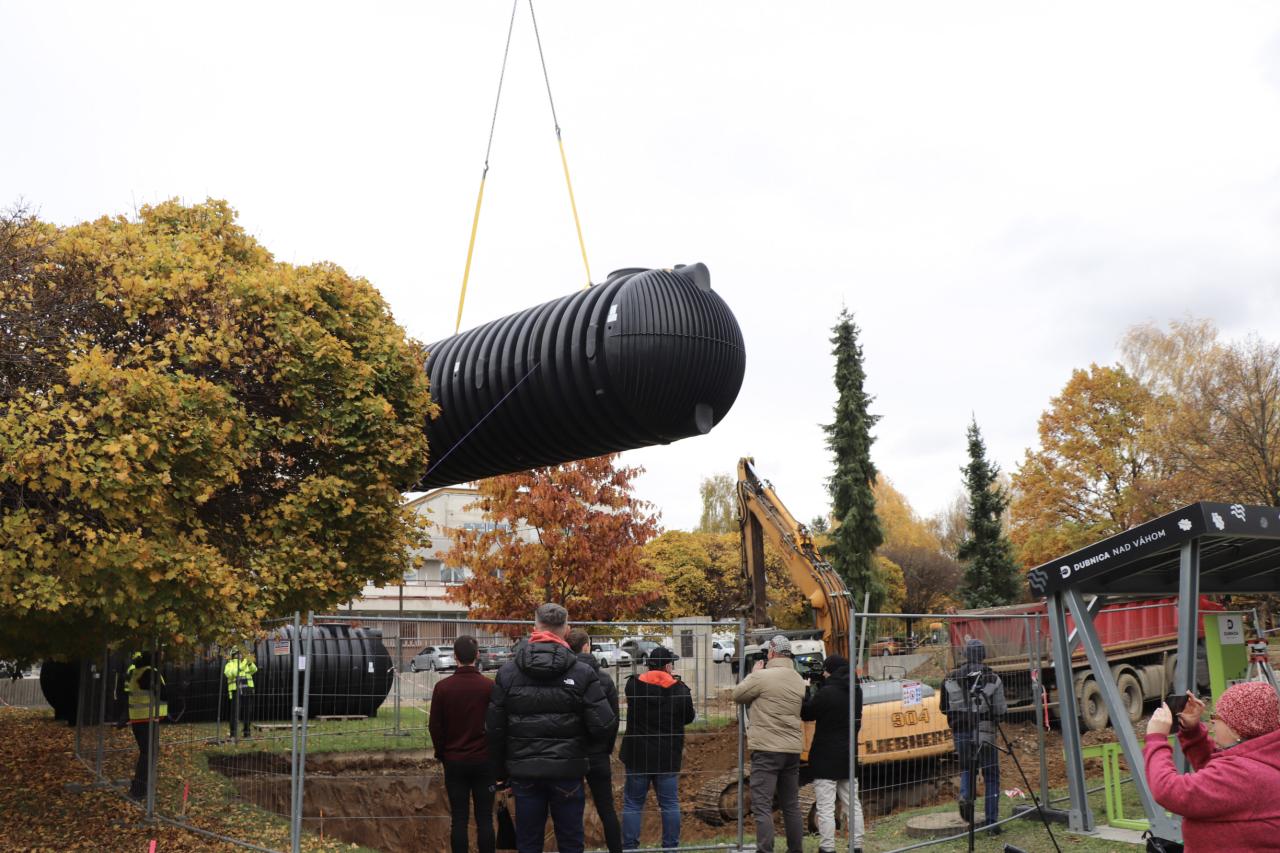 Projekt Zelenšia Dubnica odštartoval v pondelok 27. októbra 2025 symbolicky osadením prvej zo siedmich retenčných nádrží, ktoré budú zachytávať dažďovú vodu zo striech mestského úradu a domu kultúry. Zadržanou vodou sa následne bude zavlažovať rastlinstvo v ekologickom parčíku, ktorý vzniká na Námestí A. Dubčeka. Rozsahom i zameraním ide nielen na úrovni samospráv o mimoriadny projekt. „Veľmi nám záleží na tom, aby sme v našom meste vytvorili priaznivé podmienky na život pre obyvateľstvo a adaptovali sa na blížiacu sa zmenu klímy. Nádrže, ktoré sme dnes spolu s ohlásením projektu Zelenšia Dubnica symbolicky spustili do zeme, spolu pojmú až 220-tisíc litrov vody. Ide o množstvo, ktoré by až jeden rok vystačilo priemernej 4-člennej rodine, naplnilo by plavecký bazén či 40 hasičských cisterien,“ vysvetlil primátor mesta Peter Wolf.
