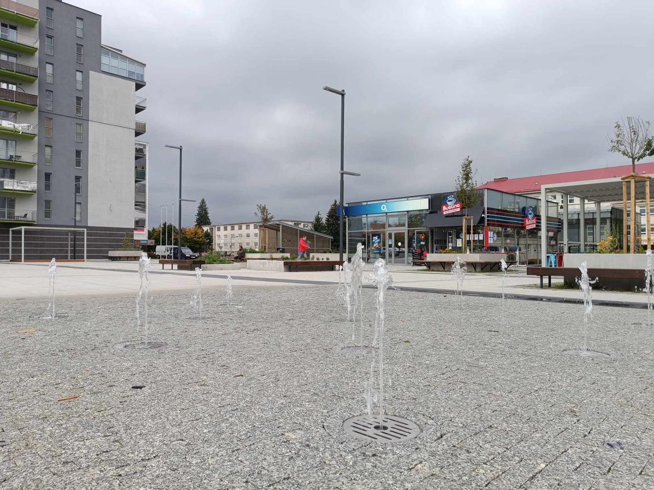 Voda, ktorá na námestí cirkuluje slúži k napájaniu fontán a kvapôčkovej závlahe rastlín nachádzajúcich sa v betónových kvetináčoch. Fontány na námestí tak mesto na zimné obdobie vyplo, teda uviedlo do suchého režimu.
