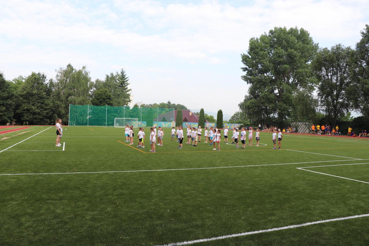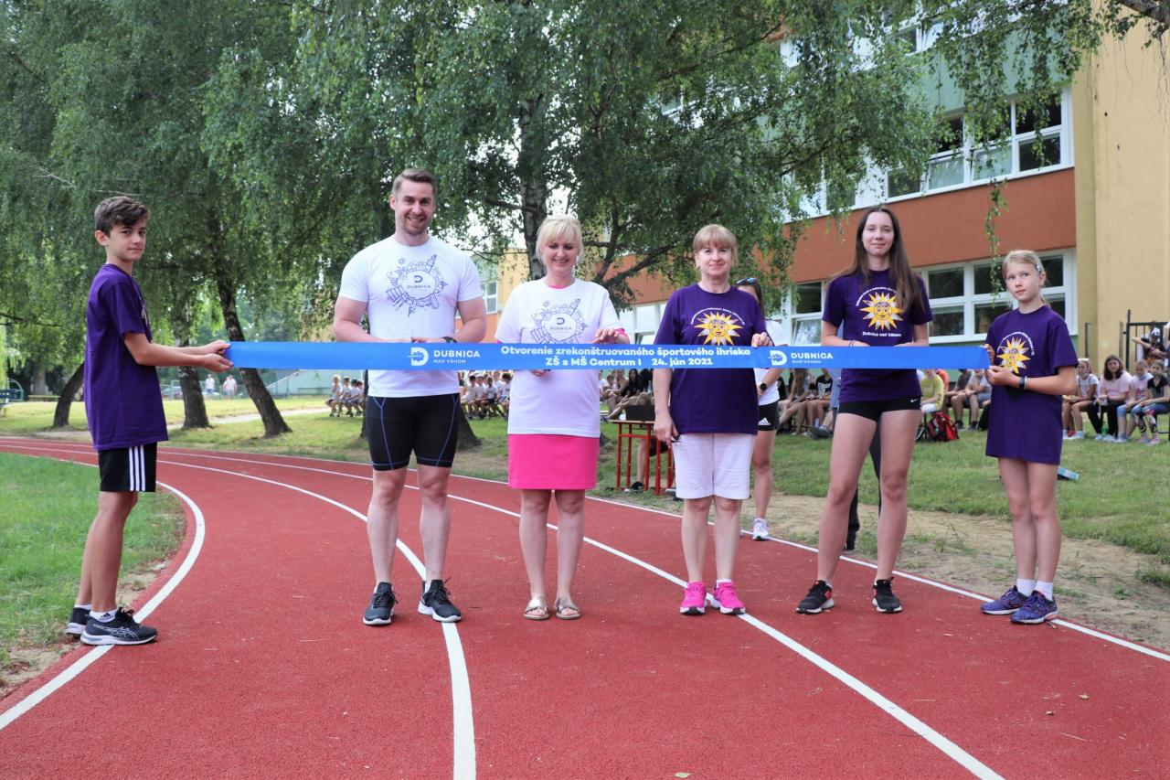 Vynovené ihrisko do prevádzky uviedli žiaci a pedagógovia základnej školy symbolickým prestrihnutím pásky a priateľským futbalovým zápasom s primátorom, mestskými poslancami a zamestnancami radnice. Nechýbal ani oficiálne prvý výbeh po novom tartanovom povrchu a krátky kultúrny program žiakov základnej školy. „Na nové viacúčelové ihrisko aj atletickú dráhu sme sa už naozaj tešili. V priebehu rekonštrukcie sme ako škola boli obmedzovaní naozaj len minimálne. Teším sa, že od septembra budeme môcť areál už naplno využívať, no, samozrejme, neodolali sme zašportovať si na ňom ešte pred školskými prázdninami,“ uviedla počas slávnostného otvorenia riaditeľka školy Jana Vargová.