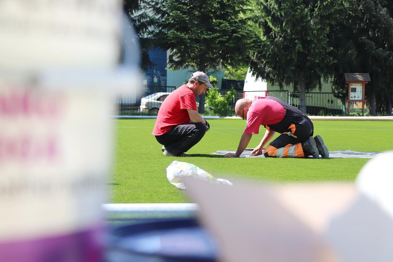Pôvodne používanú škvaru na 3-dráhovom atletickom ovále nahradil umelý povrch - striekaný tartan, ktorý bol aplikovaný aj na rozbehovú dráhu pre skok do diaľky. Pôvodne asfaltovú multifunkčnú hraciu plochu nahradila umelá tráva s prvkami určenými na loptové hry.