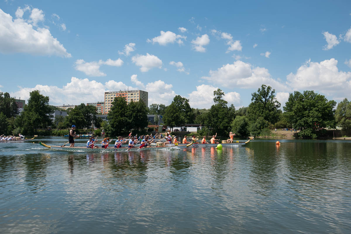 My sme si v piatok i v sobotu užili množstvo koncertov priamo z balkóna Baťovho spoločenského domu, prehliadli sme si novú mestskú športovú halu a tiež sme videli, ako závodia tzv. Dračie lode na miestnom Štěrkovišti.