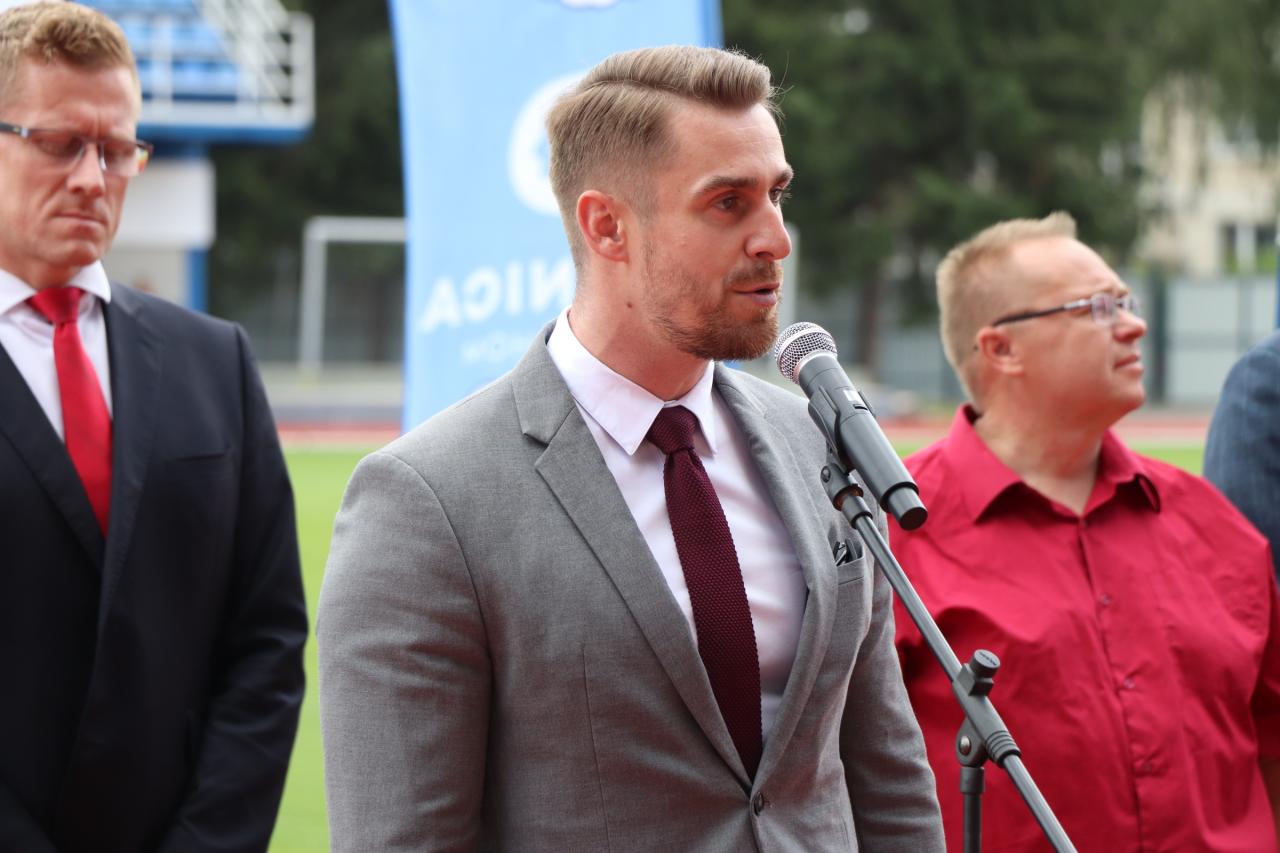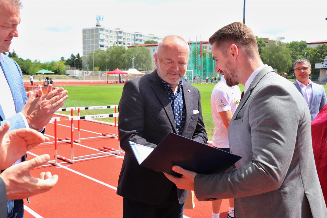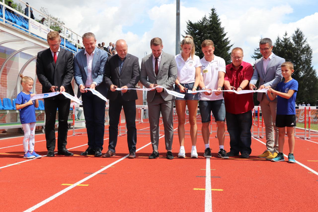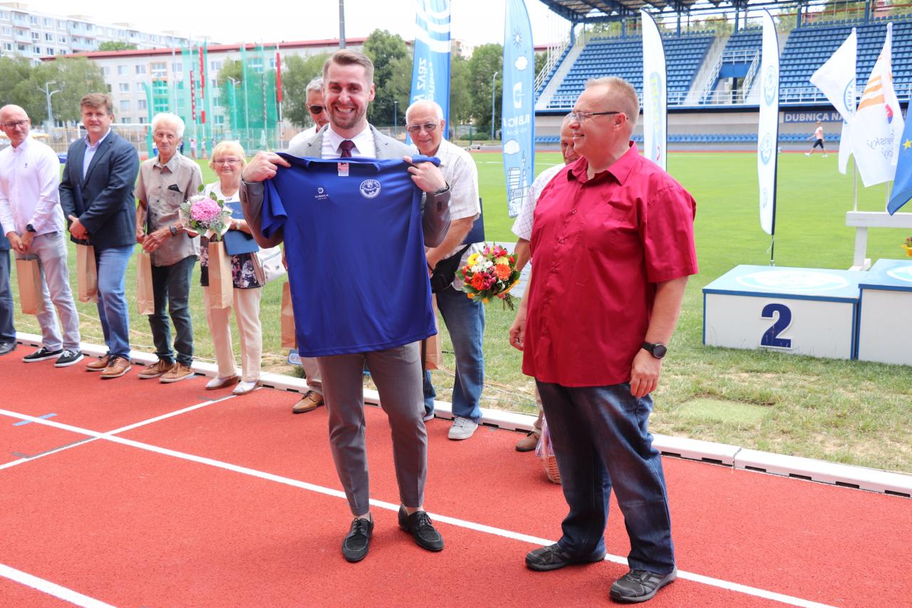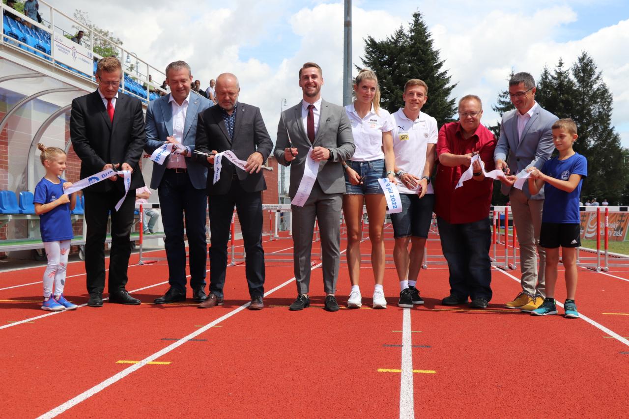 Štyristometrový atletický ovál so šiestimi dráhami začal zhotoviteľ – SPORT Construction, a. s., opravovať v apríli 2021. Oprava už bola nevyhnutná, keďže tartan bol po dvoch dekádach používania výrazne poškodený. „Som naozaj veľmi rád, že sa tu dnes môžeme stretnúť a spoločne slávnostne otvoriť zrekonštruovanú atletickú dráhu. Atletika má v našom meste bohatú históriu, vychovala naozaj skvelých športovcov. Chcel by som sa poďakovať všetkým, ktorí sa podieľali na rekonštrukcii atletickej dráhy, a to tak Ministerstvu školstva, vedy, výskumu a športu SR, ako aj Slovenskému atletickému zväzu a jeho predstaviteľom. Nebolo to len o poskytnutí finančných prostriedkov, veľkú pomoc sme vnímali aj v technickom a personálnom zabezpečení. Rovnako by som sa chcel poďakovať aj poslancom mestského zastupiteľstva, ktorí svojím hlasovaním a schválením uznesenia odsúhlasili finančné prostriedky na takúto nákladnú rekonštrukciu,“ prihovoril sa prítomným primátor mesta Peter Wolf.