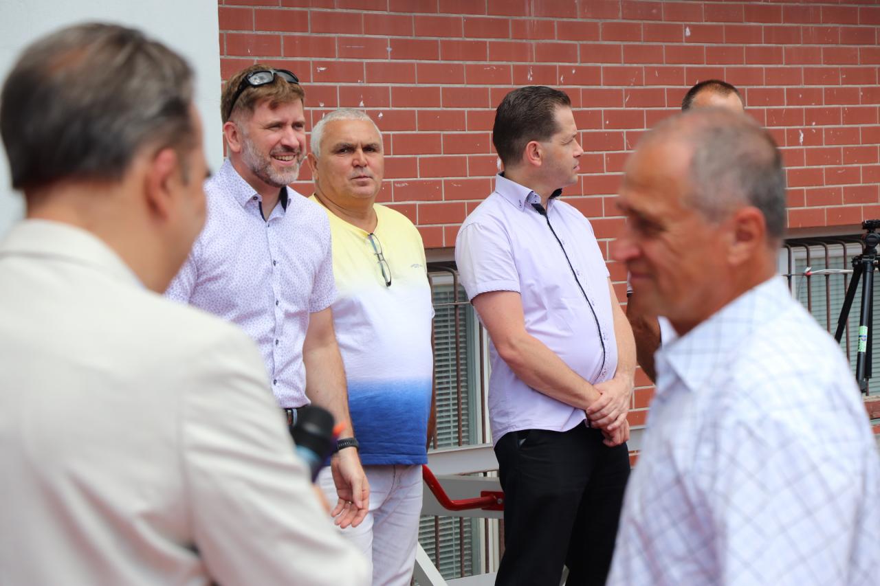 Slávnostné prestrihnutie pásky sa konalo za účasti významných hostí. Podujatie svojou účasťou podporili aj predseda TSK Jaroslav Baška, štátny tajomník pre šport Ministerstva školstva, vedy, výskumu a športu SR Ivan Husár, riaditeľ Úradu práce, sociálnych vecí a rodiny Trenčín Boris Ilkyw, generálny sekretár Slovenského atletického zväzu Vladimír Gubrický, prezident Atletického klubu Spartak Dubnica nad Váhom Rastislav Hrbáček, šprintér Ján Volko, prekážkarka Emma Zapletalová, bývalí prezidenti, funkcionári a tréneri AK SPpartak Dubnica nad Váhom, poslanci mestského zastupiteľstva, zhotoviteľ stavebných prác a ďalší ctení hostia, ktorým ďakujeme za ich vzácnu prítomnosť.