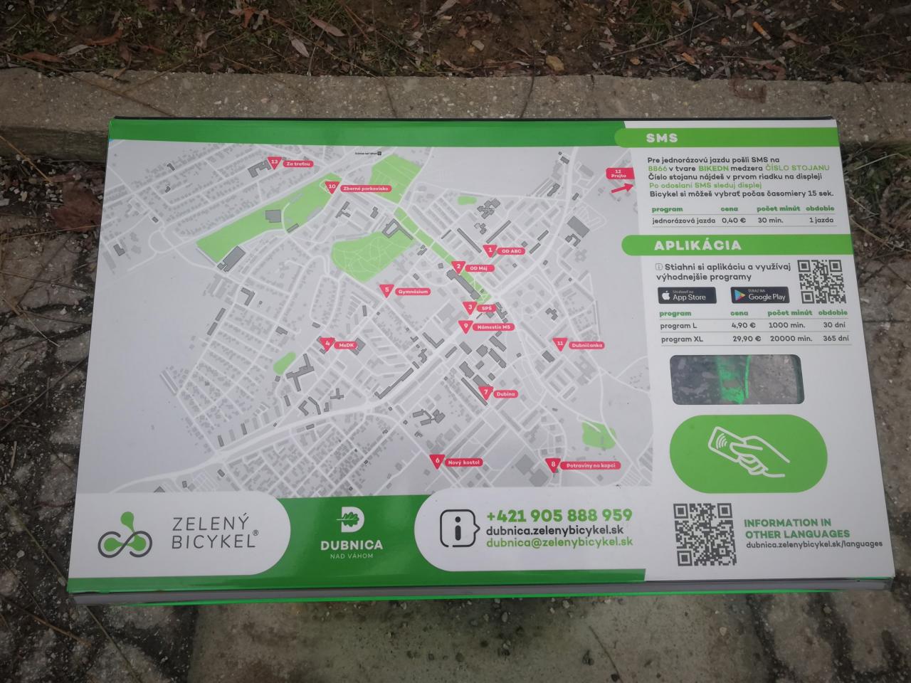 Systém zdieľaných bicyklov, podporený z Integrovaného regionálneho operačného programu, by mesto Dubnica nad Váhom rado uviedlo do prevádzky už v jarných mesiacoch. Spusteniu tzv. bikesharingu však predchádza montáž jednotlivých cyklostojanov. Tie pribudnú v trinástich strategicky zvolených lokalitách. „Momentálne máme zvolené stojiská napojené na elektrickú energiu, nainštalovaná je informačná časť stojanov spolu s mapkou jednotlivých stojísk. V závislosti od počasia a poveternostných podmienok budú postupne na stojiskách pribúdať samotné stojany na bicykle,“ vysvetlila Eva Granátová z oddelenia verejného obstarávania a strategického rozvoja mesta Dubnica nad Váhom. Zároveň vysvetlila, že mesto muselo pri výbere umiestnenia stojanov prihliadať okrem vhodnej lokality aj na to, aby boli umiestnené na mestských pozemkoch a nachádzali sa v blízkosti verejného osvetlenia.