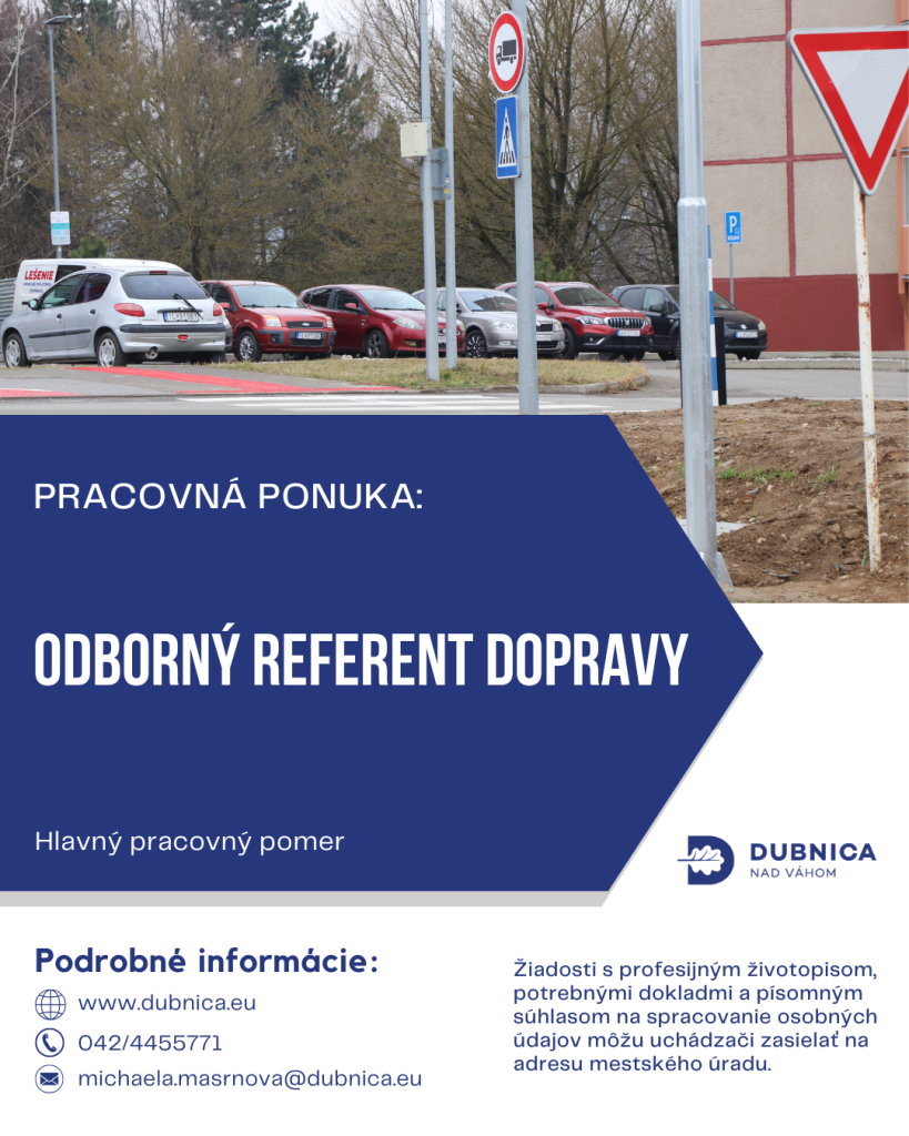 Mesto Dubnica nad Váhom príjme do pracovného pomeru: