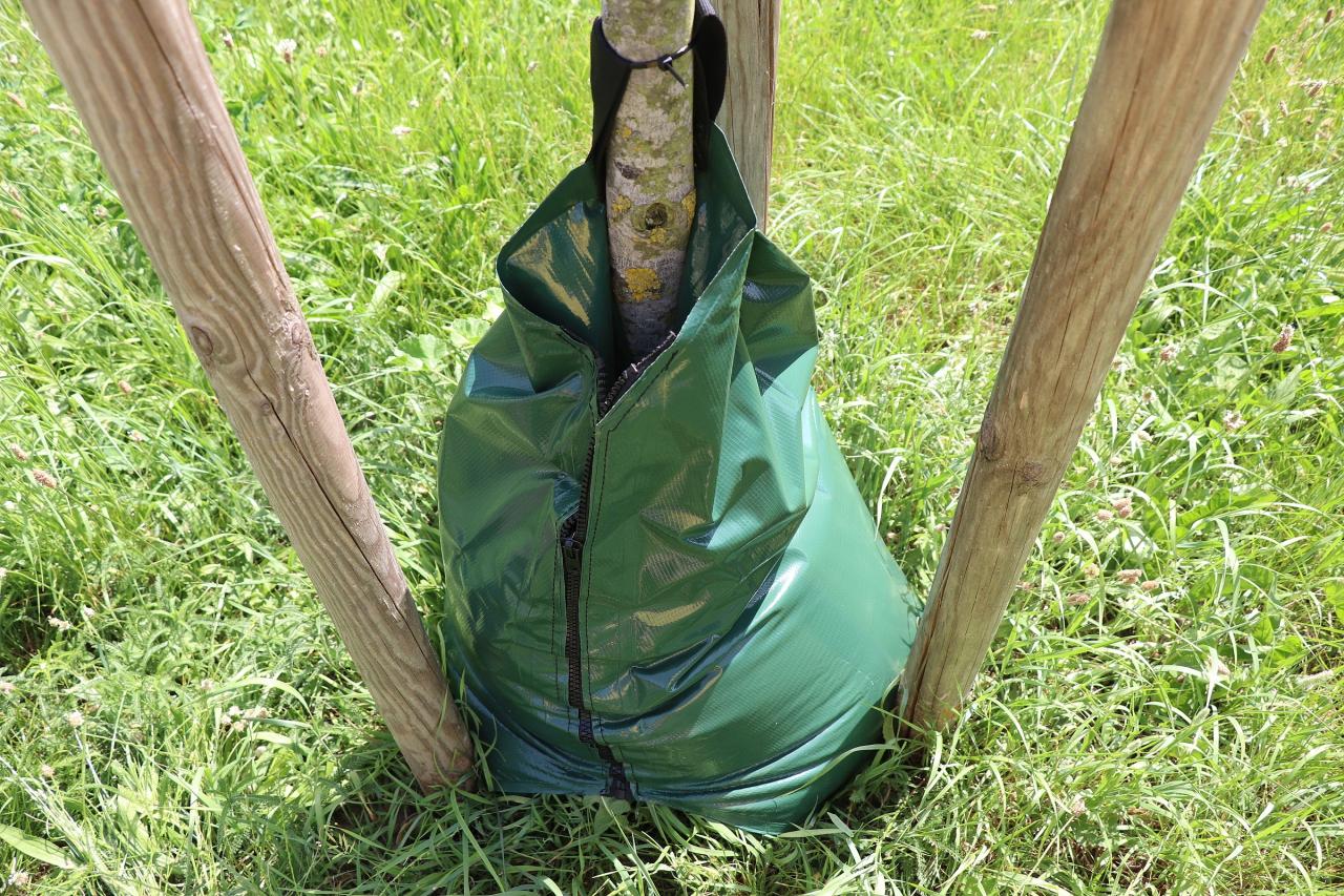 Zavlažovacie vaky slúžia na neustále a cielené zavlažovanie koreňovej sústavy stromu. „V princípe ide o to, že kým pri štandardnom polievaní stromov sa voda rozptyľuje do šírky a k samotnému stromu sa dostane len malé množstvo vody, pri zavlažovacích vakoch sa voda dostáva priamo k stromu a k jeho koreňom, pričom otvory v spodnej časti vaku dávkujú drevine potrebnú vodu v intervale 5-9 hodín,“ vysvetlil Juraj Prekop z referátu životného prostredia.