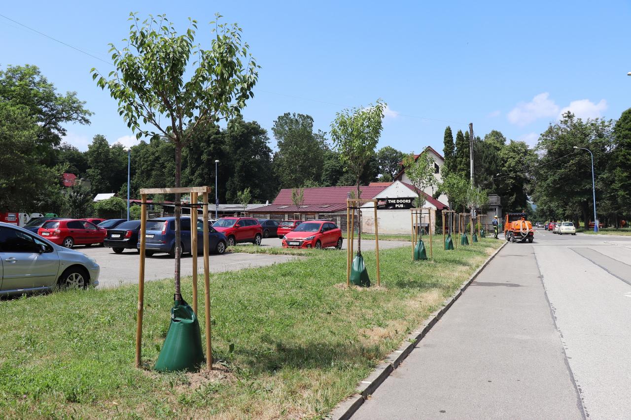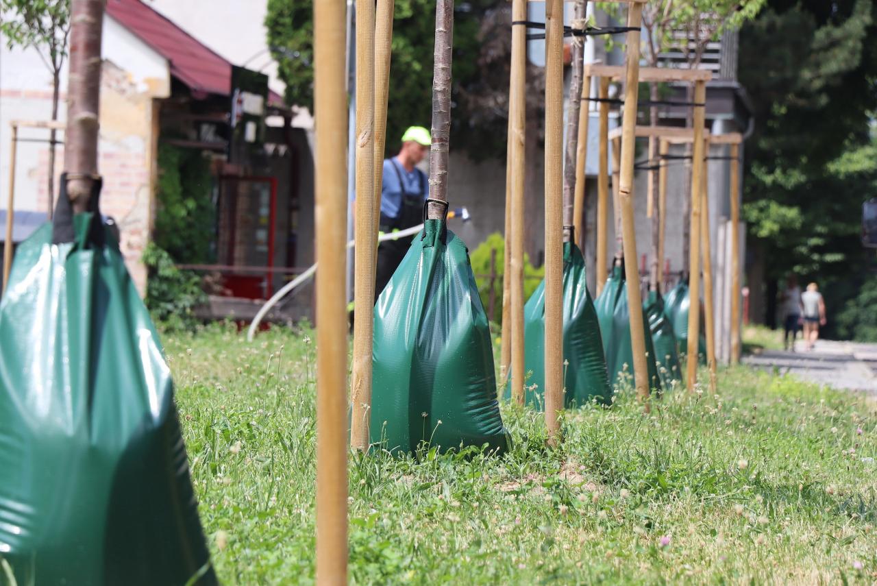 Zavlažovacie vaky, ktoré sú efektívnym a prospešným riešením pri zavlažovaní mladých stromov, mesto umiestnilo k stromom na sídlisku Centrum I a na Moyzesovej ulici. „Nateraz sme obstarali 20 kusov zavlažovacích vakov s objemom 75 litrov. Pokiaľ sa osvedčia, radi túto praktickú a efektívnu pomôcku doprajeme aj ďalším stromom v meste,“ uzatvoril Juraj Prekop.