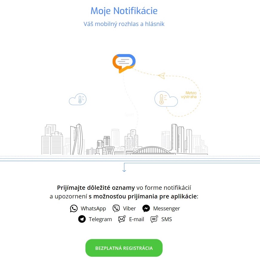 Registrácia občanov je bezplatná, veľmi jednoduchá a nezaberie viac ako pár minút. Stačí vyplniť krátky formulár na tejto adrese, v ktorom sa zadáva názov mesta, jeho konkrétna časť, v ktorej človek žije, telefónne číslo a e-mailová adresa. K výhodám služby patrí napr. aj to, že obyvatelia nie sú zaťažovaní inštaláciou žiadnych nových aplikácií. „Z pohľadu obyvateľa sme sa snažili na komunikáciu využiť už existujúce aplikácie ako Viber, WhatsApp, Messenger, Telegram alebo aj e-mail. Medzi ďalšie výhody patrí možnosť výberu, ktoré kategórie oznamov obyvateľa zaujímajú, a teda sa nemusí báť, že bude obťažovaný neželanými informáciami,“ vysvetlil Miroslav Šimko, jeden z členov tímu, ktorý stojí za službou Moje notifikácie. Ako dodal, „v mestách sú užitočné oznamy o odstávkach elektriny, vody, alebo informácie o dopravných obmedzeniach v určitých častiach mesta. Tieto lokalizačné oznamy je možné rozposielať iba obyvateľom konkrétnych častí alebo ulíc. Taktiež majú obyvatelia veľmi radi propagačné pozvánky na kultúrne alebo aj športové podujatia.“ Preto ak aj vy chcete bezplatne dostávať notifikácie od mesta Dubnica nad Váhom priamo vo svojom telefóne, zaregistruje sa už dnes.