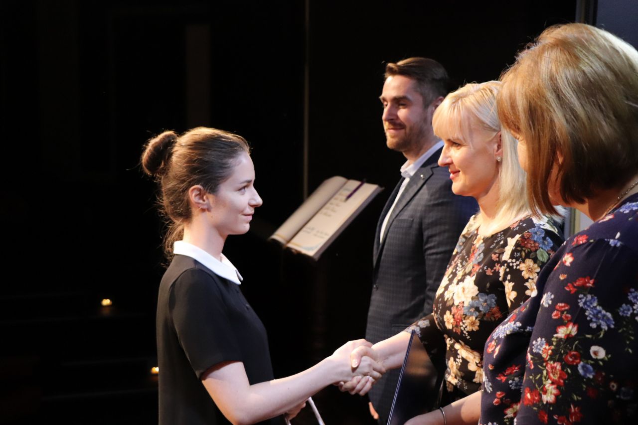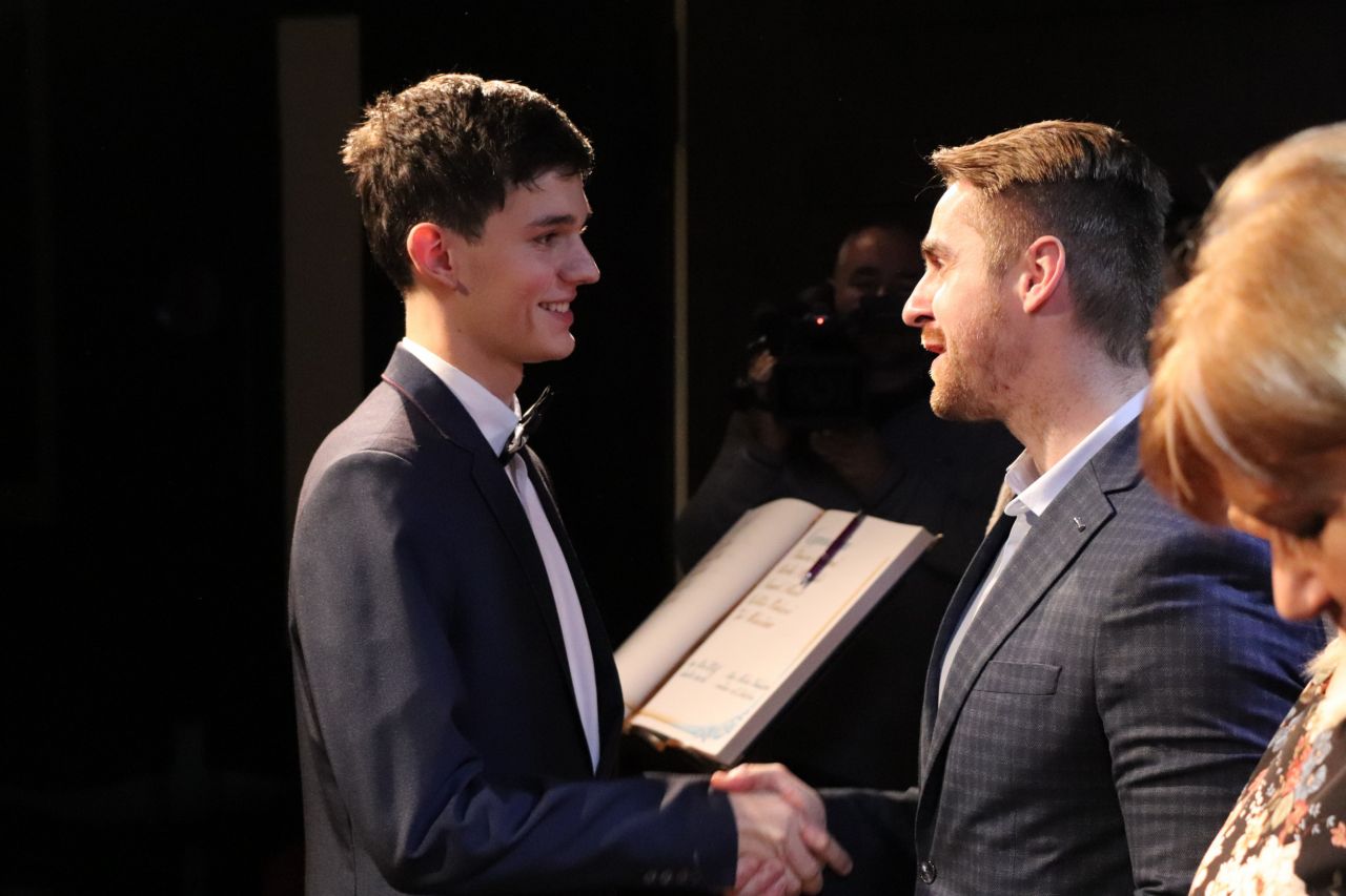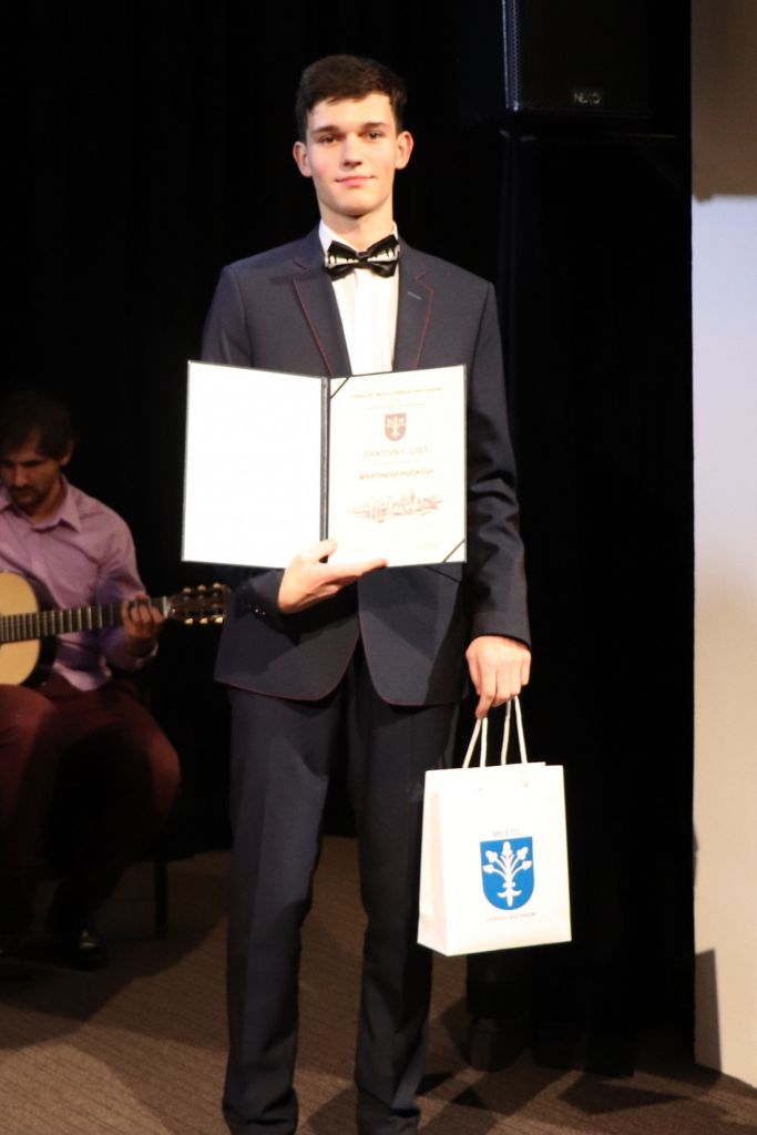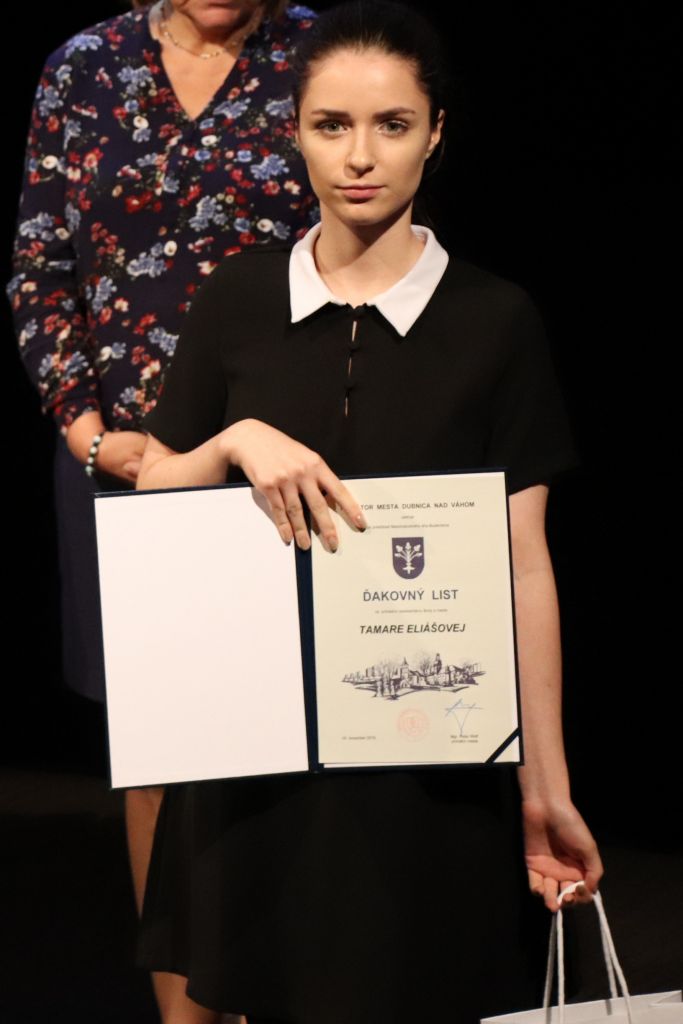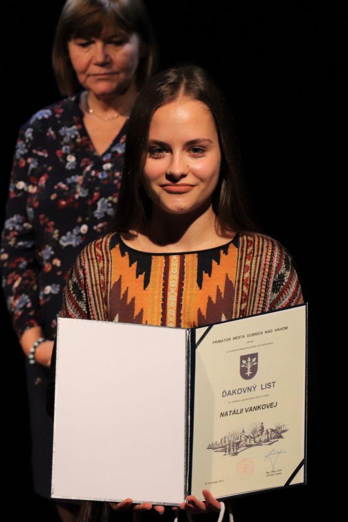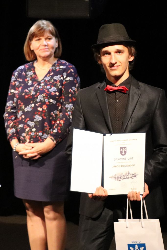 Oceneným študentom gratulovala tiež riaditeľka gymnázia Adriana Vančová, ktorá je zároveň predsedníčkou komisie školstva pri mestskom zastupiteľstve. „Každá zo škôl, na ktorých sa ocenení študenti vzdelávajú, má svoje špecifiká a je zameraná na niečo iné. Napriek tomu majú všetci niečo spoločné – vystúpili zo šedého priemeru a ukázali, že dokážu byť dobrým a kvalitným vzorom pre ostatných. Našli si priestor a čas na to, aby sa venovali niečomu nad rámec svojich povinností, a to sa cení,“ povzbudila prítomných predsedníčka komisie. Slávnostný charakter stretnutia svojimi hudobnými vstupmi umocnili žiaci Základnej umeleckej školy v Dubnici nad Váhom.