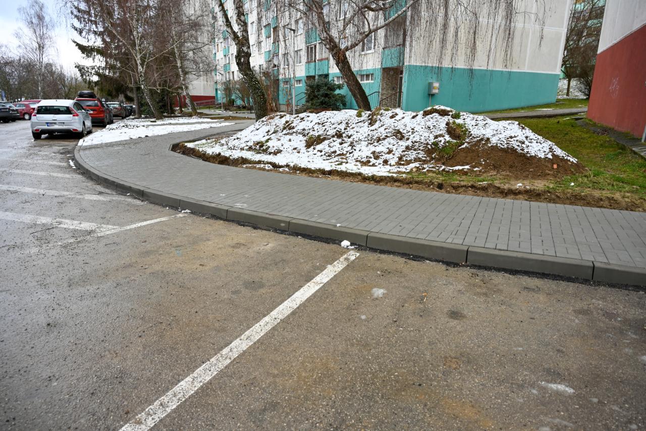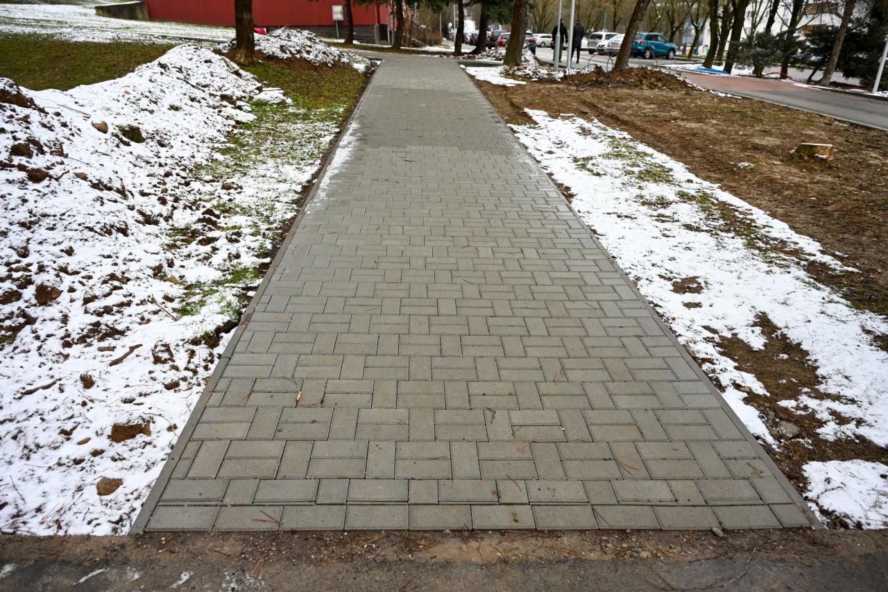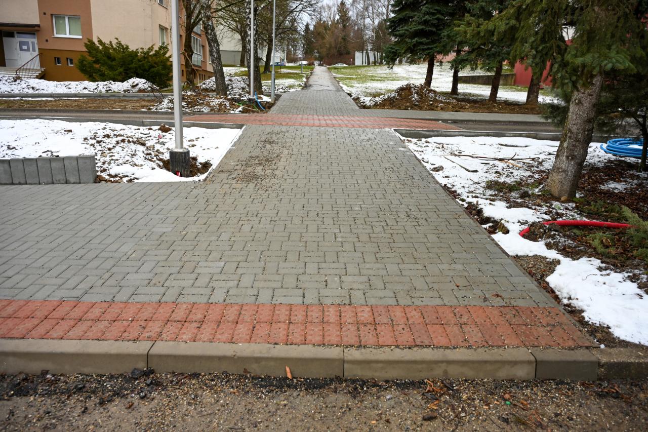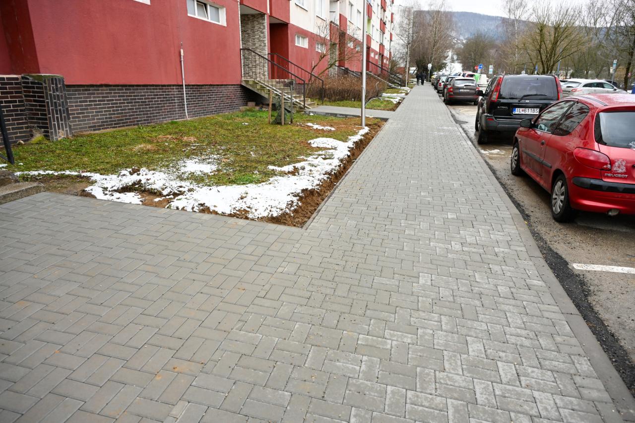 Nový chodník, ktorý pribudol v posledných týždňoch, tak lemujú aj nové stĺpy verejného osvetlenia, a to s cieľom zvýšenia bezpečnosti peších, ktorí sa viac nemusia pohybovať po komunikácii určenej pre motorové vozidlá. Novovybudované parkovacie miesta sú opäť vytvorené z vodopriepustnej dlažby, čo je jedným z ďalších vodozádržných opatrení. „Takýmto spôsobom dokážeme zrážkovú vodu udržať v území, v ktorom spadne, a pomáhať tak zvyšovať hladinu podzemnej vody, čo je v súlade s celomestským environmentálnym projektom Zelenšia Dubnica,“ doplnil primátor.