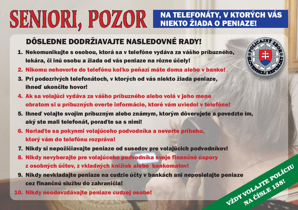 - ak máte podozrenie, že ide o podvod, v telefonáte nepokračujte.