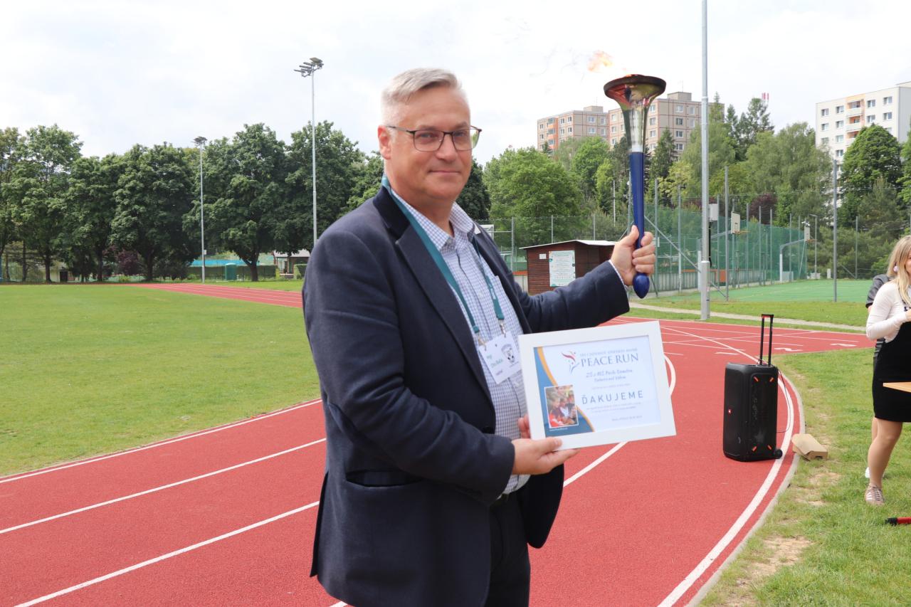 Prítomní si mohli tiež podržať si mohli tiež pochodeň mieru – ten istý symbol, ktorý v rukách držali aj svetové osobnosti ako napríklad pápež František. S bežcami sme sa rozlúčili symbolickým „koliečkom“ na tartanovej dráhe, ktoré žiaci absolvovali spolu s bežcami.