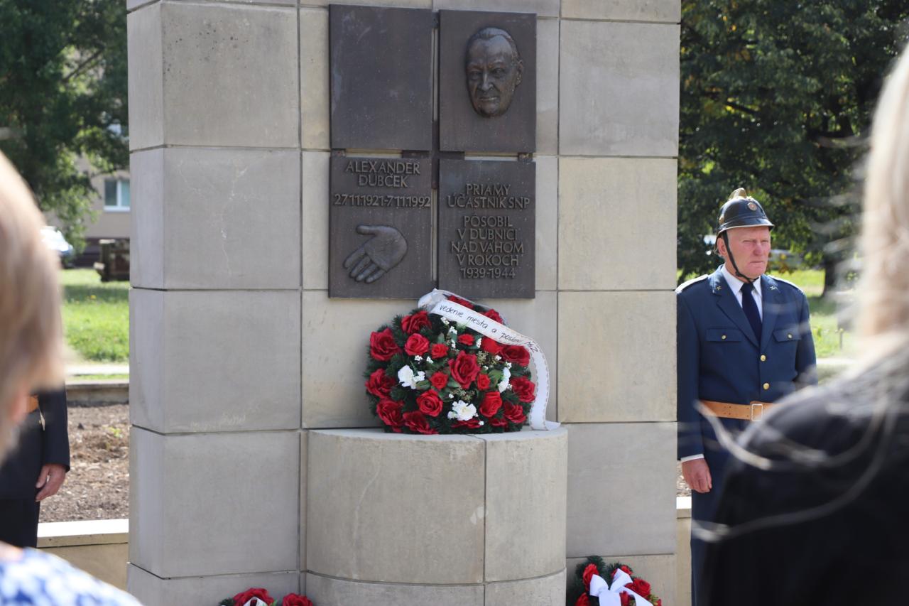 Na Námestí Alexandra Dubčeka v Dubnici nad Váhom v príhovoroch zneli slová apelujúce na dôležitosť pripomínania si a šírenia osvety o jednej z našich najvýznamnejších dejinných udalostí. „SNP sa svojím rozsahom, vojenským, národným i medzinárodným významom zaradilo k najväčším vojensko-politickým činom nášho národa v jeho modernej histórii,“ zaznelo v príhovore predsedu Základnej organizácie SZPB Dubnica nad Váhom Štefana Omachela, ktorý zároveň vyjadril znepokojenie nad čoraz častejšie sa objavujúcim spochybňovaním a prekrúcaním historických faktov a udalostí.