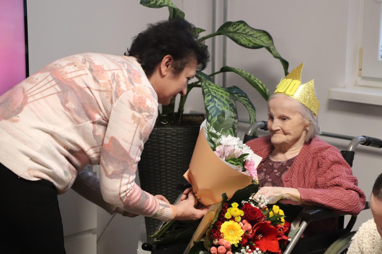 Pri stretnutí vládla mimoriadne príjemná a slávnostná atmosféra. Oslávenkyňa prijala priania s úsmevom. S úctou a obdivom sme jej odovzdali krásnu kyticu, symbolický darček a najmä úprimné želania pevného zdravia, pokoja, radosti a množstva láskavých chvíľ v kruhu jej blízkych i priateľov.