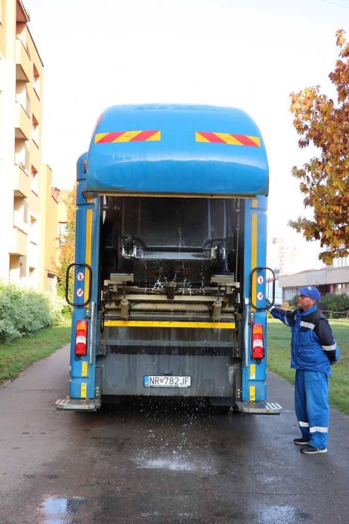 Čistenie 1100-litrových kontajnerov prebiehalo pomocou umývacieho auta zapožičaného z Nitrianskych komunálnych služieb, ktoré smetnú nádobu prostredníctvom vysokotlakových tryskov zbavilo nečistôt a dezinfikovalo. „Umývacie auto sme zapožičali práve pre jeho efektívnu a ekologickú prácu. Pri čistení sú mycie hlavy vnorené do vnútra nádoby, čím sa zabezpečí jej kvalitné umytie predovšetkým na jej dne, kde je najviac nečistôt,“ priblížil viceprimátor Tomáš Truchlý s tým, že samotné čistenie jedného kontajnera umývaciemu autu trvalo 20 sekúnd.