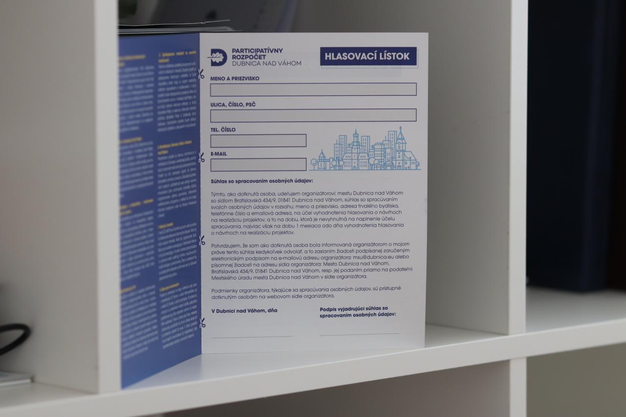 Prezentácia občanom môže pomôcť zorientovať sa v jednotlivých projektoch a uľahčiť následné rozhodovanie pri udeľovaní hlasov. Tie môžu Dubničania odovzdať vybraným nápadom prostredníctvom hlasovacieho hárku priloženého v májovom čísle Dubnických novín alebo formou online hlasovania. Občania budú môcť svoje hlasy následne vhodiť do urien, umiestnených v priestoroch Mestského úradu Dubnica nad Váhom alebo mestskej časti Prejta v priestoroch spoločenského domu. Hlasovať môže každý obyvateľ mesta nad 15 rokov. Hlas môže udeliť presne trom projektom podľa vlastného výberu, pričom hlasovať môže len raz.