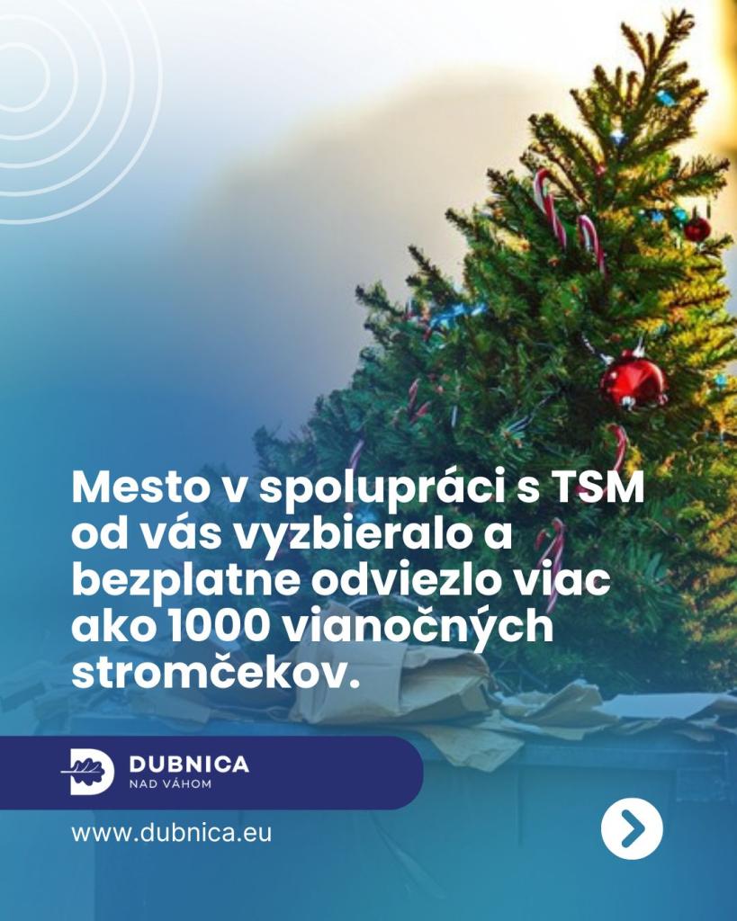 Stromčeky, ktoré zdobili naše domácnosti počas sviatkov, budú slúžiť ako zdroj obnoviteľnej energie. Aj týmto spôsobom môže byť odpadový materiál znovu využitý v prospech obyvateľov. Každý z vás, kto vianočný stromček správne zlikvidoval, prispel k tomu, aby naše mesto zostalo čisté a ekologické. Spoločne ukazujeme, že aj malé kroky môžu mať veľký dopad na životné prostredie.