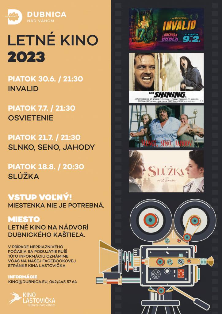V rozmedzí dní od júna do augusta si Kino Lastovička pripravilo pre Dubničanov štyri filmy rôznych žánrov. Na svoje si prídu milovníci komédii, čierneho humoru aj tí, ktorí sa radi boja.