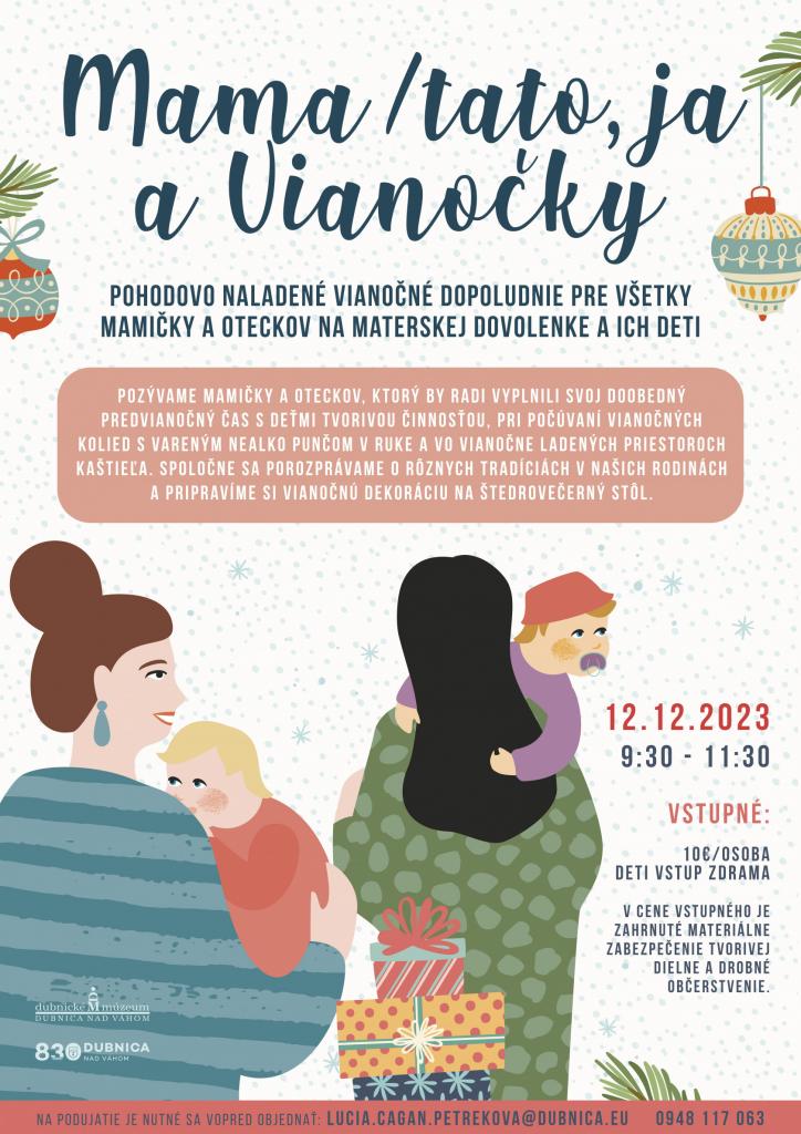 Pozývame mamičky a oteckov, ktorí by radi vyplnili svoj doobedný predvianočný čas s deťmi tvorivou činnosťou pri počúvaní vianočných kolied s nealko punčom v ruke a vo vianočne ladených priestoroch kaštieľa. Spoločne sa porozprávame o rôznych tradíciách v našich rodinách a pripravíme si vianočnú dekoráciu na štedrovečerný stôl.