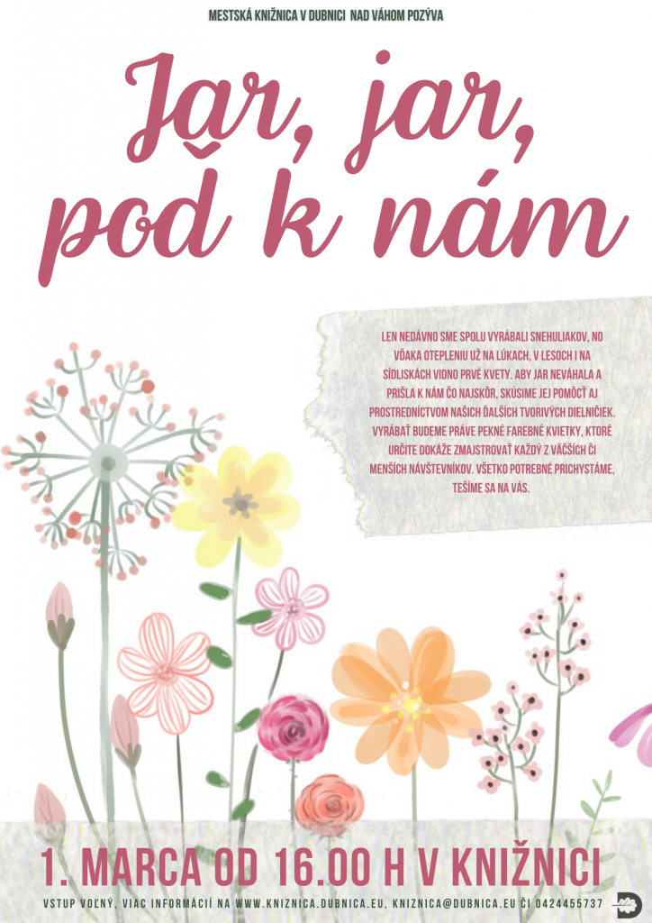 Len nedávno sme spolu vyrábali snehuliakov, no vďaka otepleniu už na lúkach, v lesoch i na sídliskách vidno prvé kvety. Aby jar neváhala a prišla k nám čo najskôr, skúsime jej pomôcť aj prostredníctvom našich ďalších tvorivých dielničiek.